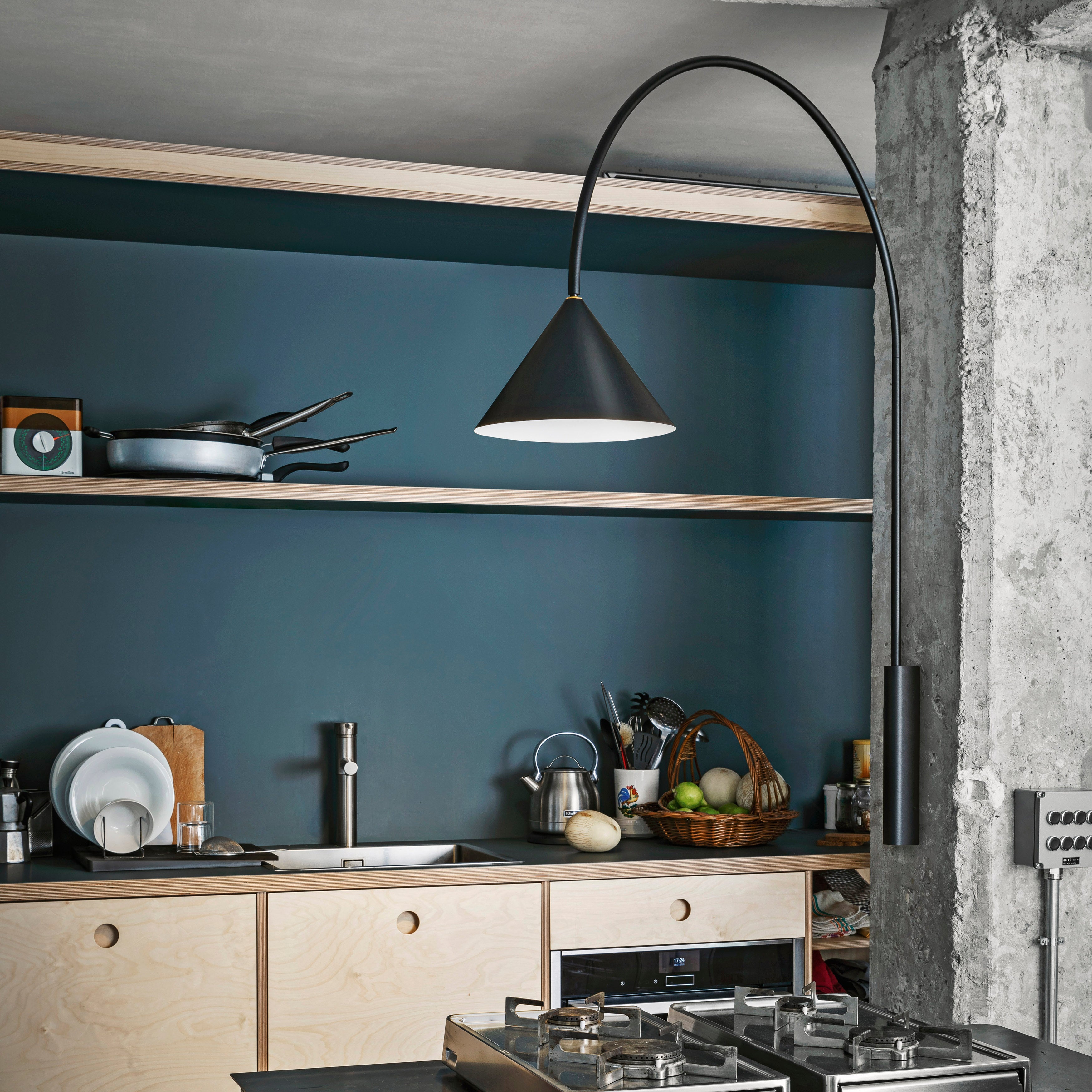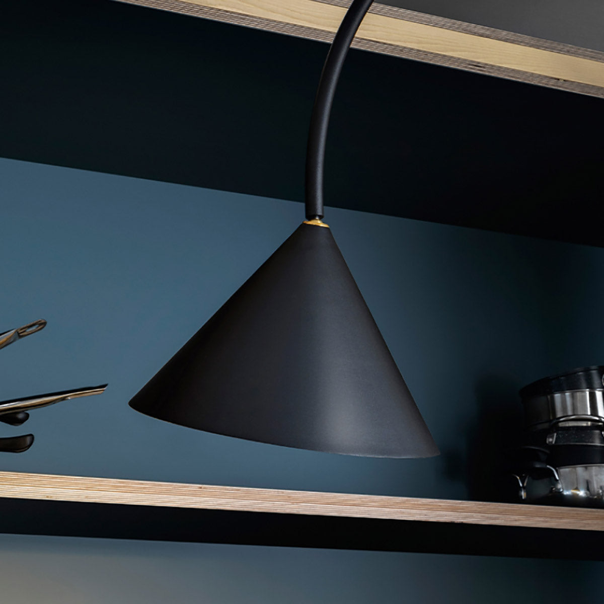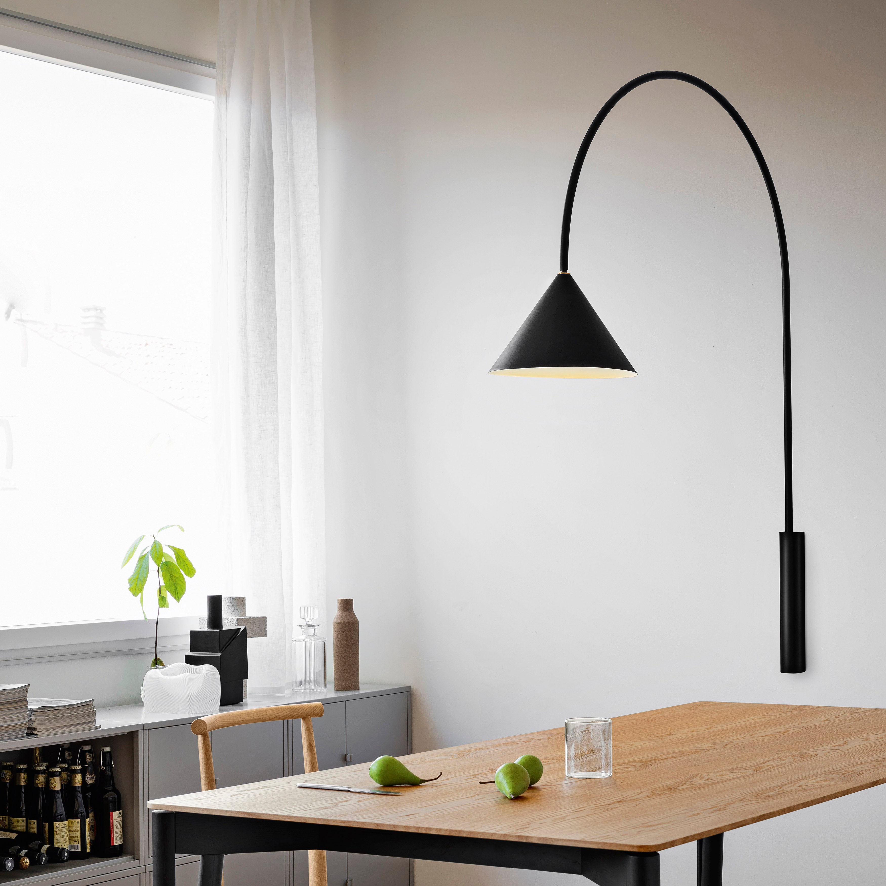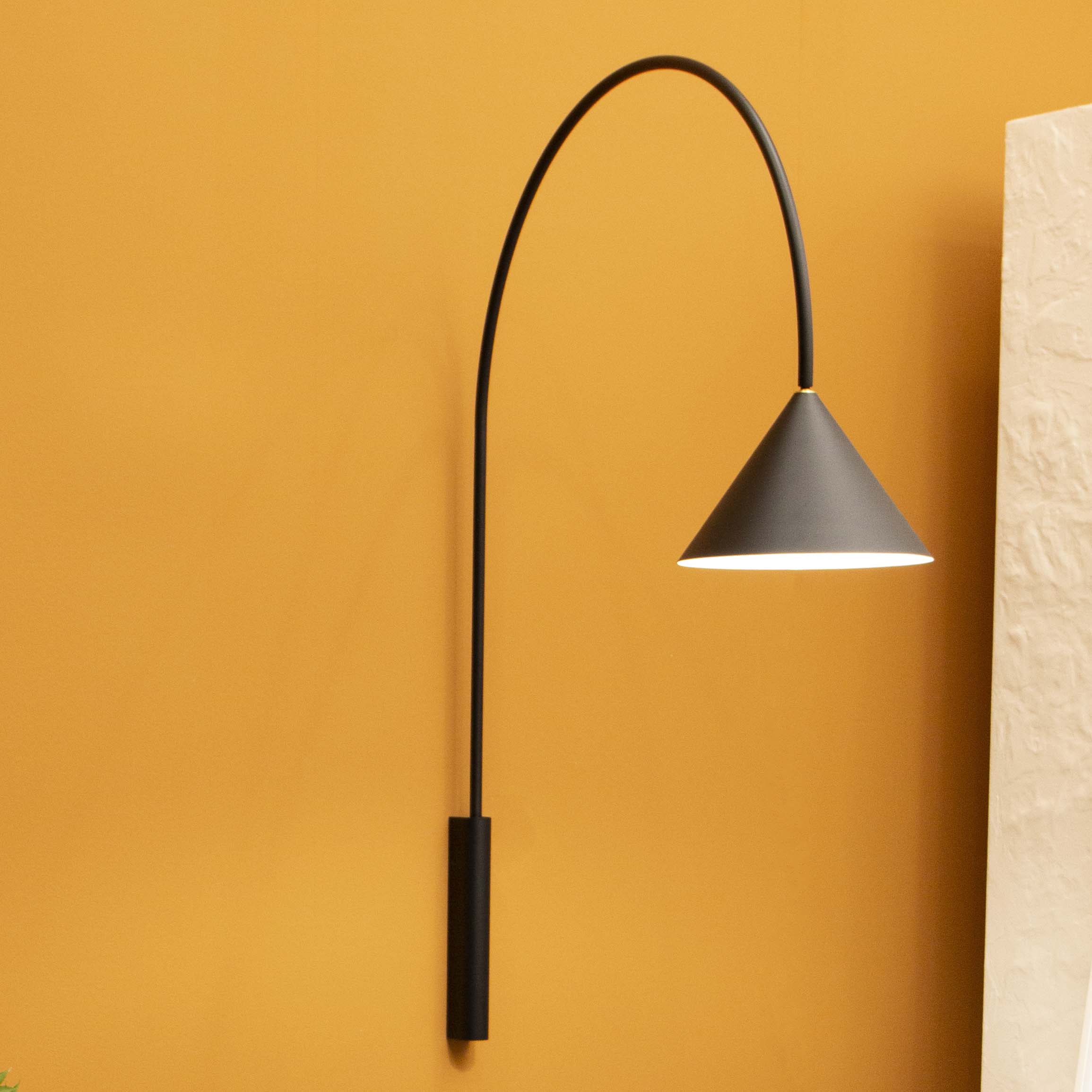 Picture this beauty arcing over a dining table or adding a dramatic frisson to a media room or study. Ozz adapts as a wall-mounted light with its signature extended curve intact. Completed with a cone-shaped shade, Miniforms soaring design is also a graphic standout in crisp black lacquer.