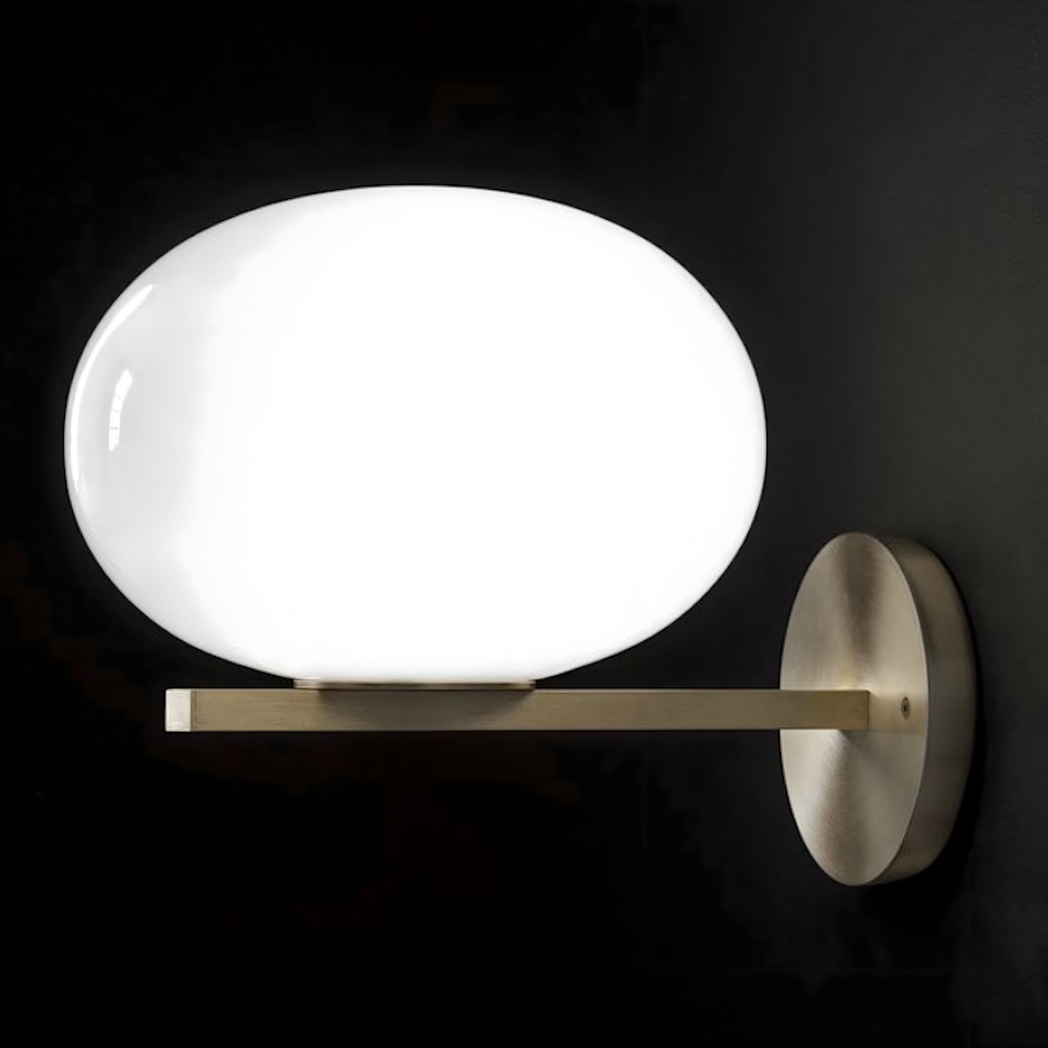 Designer Mariana Pellegrino Soto’s imagination was inspired by a drop of water—with Alba’s similarly shaped mouth-blown shade taking form in polished opaline glass. Contrast comes in the geometric wall mount fashioned in satin-finish brass, all rendered by Oluce, named an Italian Historic Brand for its more than 70 years of lighting innovation.