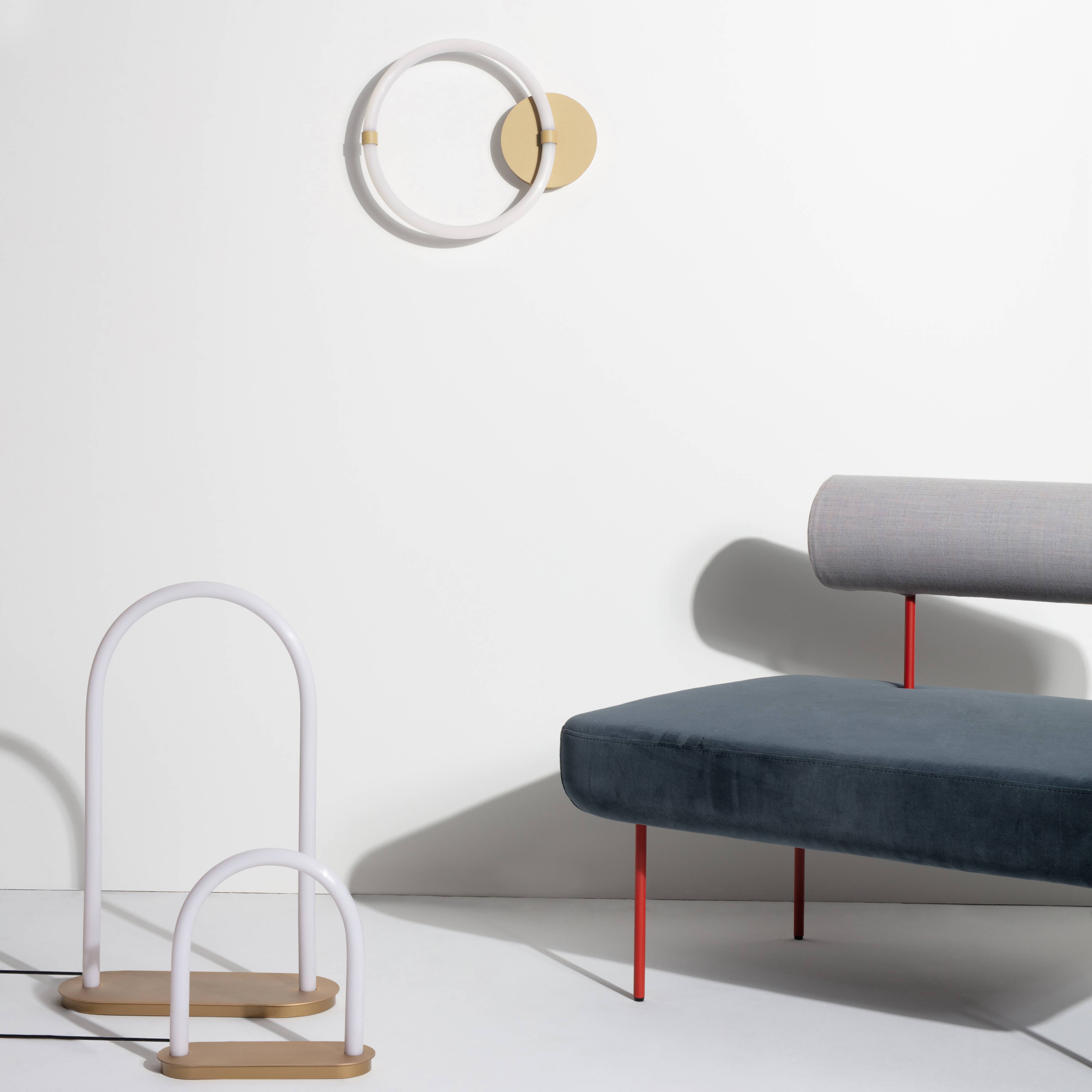 Studiopepe's Arianna Lelli Mami and Chiara di Pinto's put a ring on it with their wall fixture suggested by classic neon light but powered with state-of-the-art LED technology. The Milan design duo overlays Unseen with brass accents to match the gleaming mounting plate while the halo of illumination casts rounded shadows on surrounding walls. Admitting the piece was technically challenging, they persevered until the tubular structure had the desired purity of form.