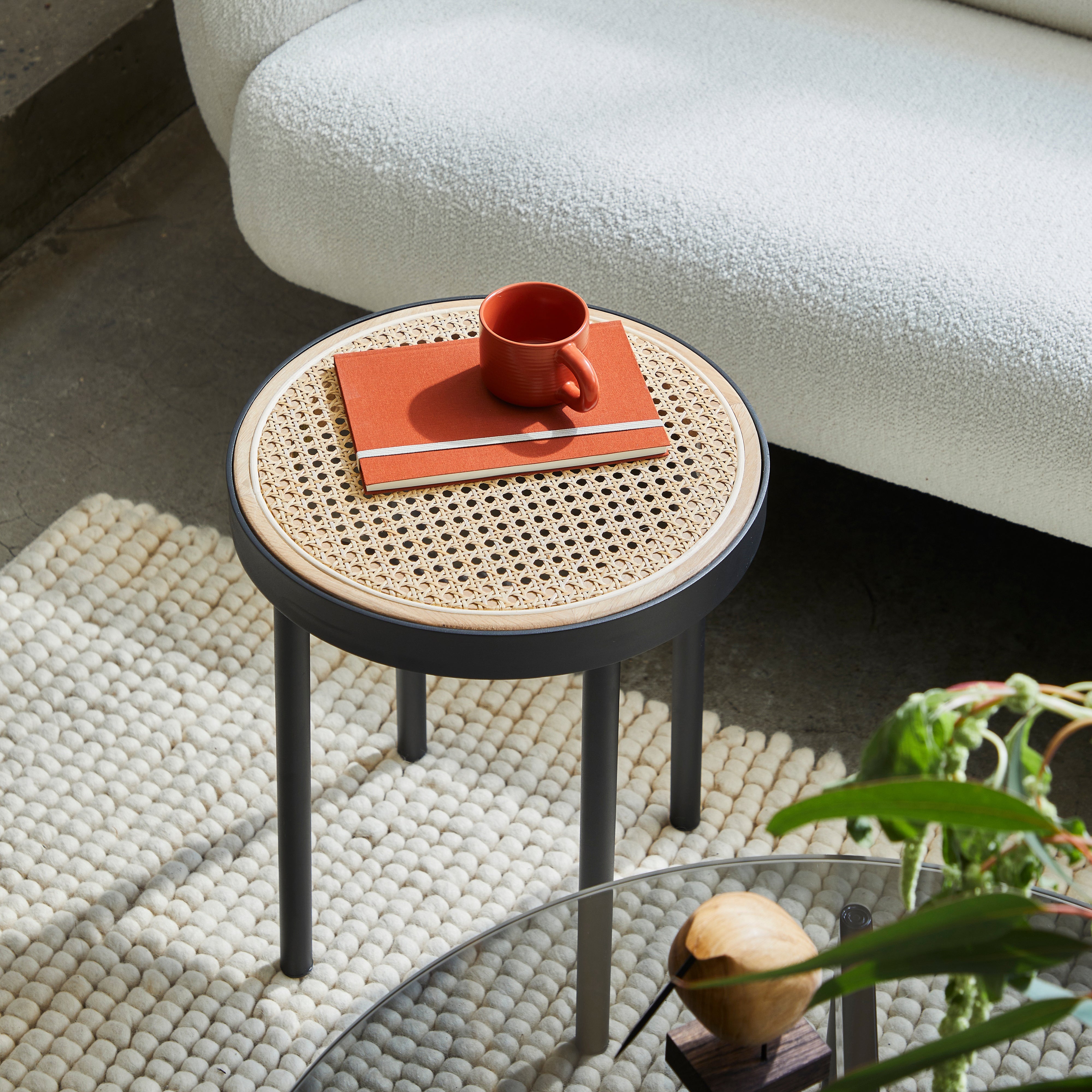 A refined synthesis of classic and modern, Be My Guest floats a woven French wicker seat with an oak frame in the crisp black metal structure of the 4-legged stool. Designer Charlotte Høncke also envisions the seating as a charming side table in the living room or as a bedside table, exuding a timeless geniality from Copenhagen maker Warm Nordic.
