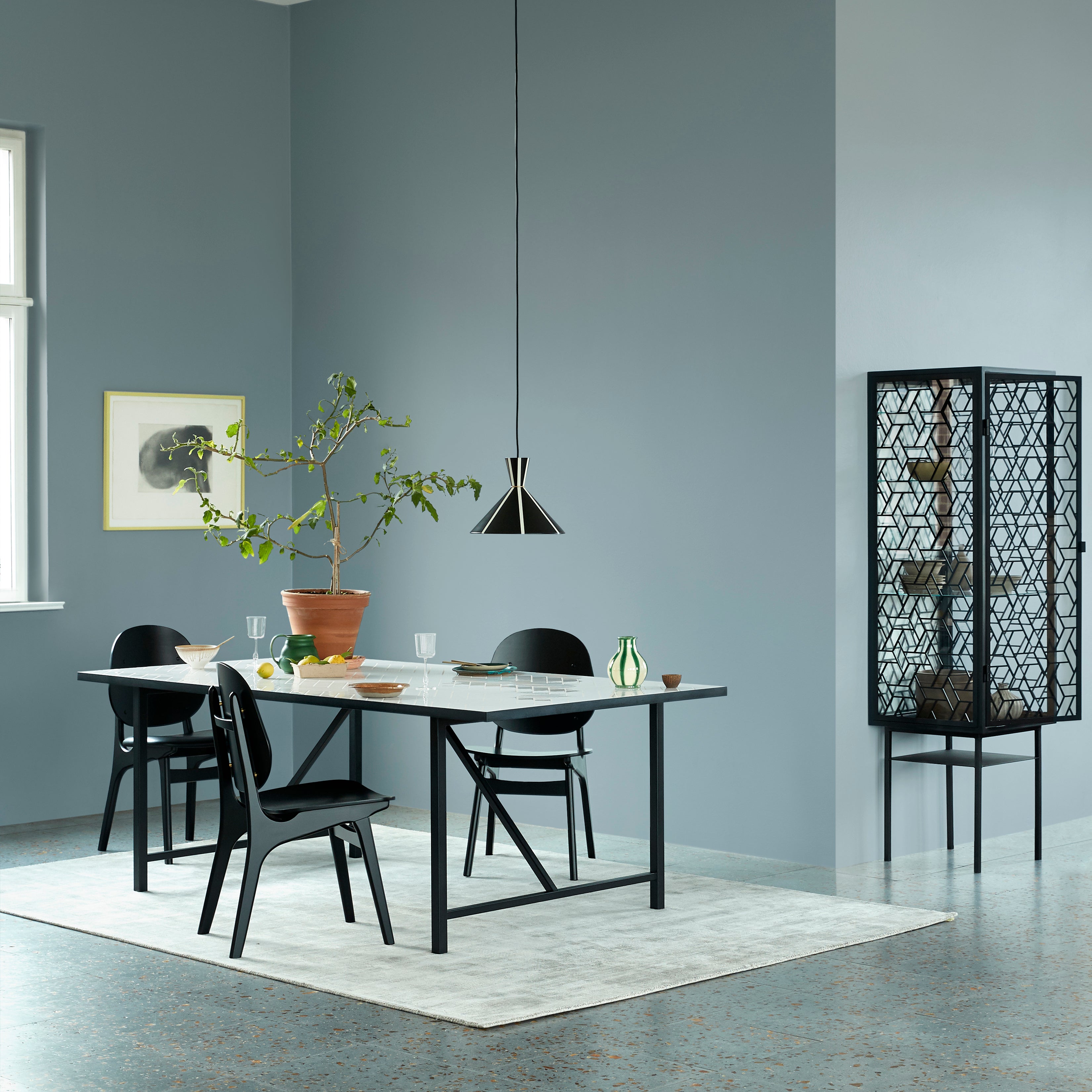 Living up to its name, Enigma offers an intriguing variation on the display cabinet in a timeless design that combines inky metal and clear glass. While highlighting treasured objects behind its transparent confines, the metal grillwork offers a view mediated by varying shadows and transparency in a strikingly singular cabinet from Danish designer Rikke Frost.