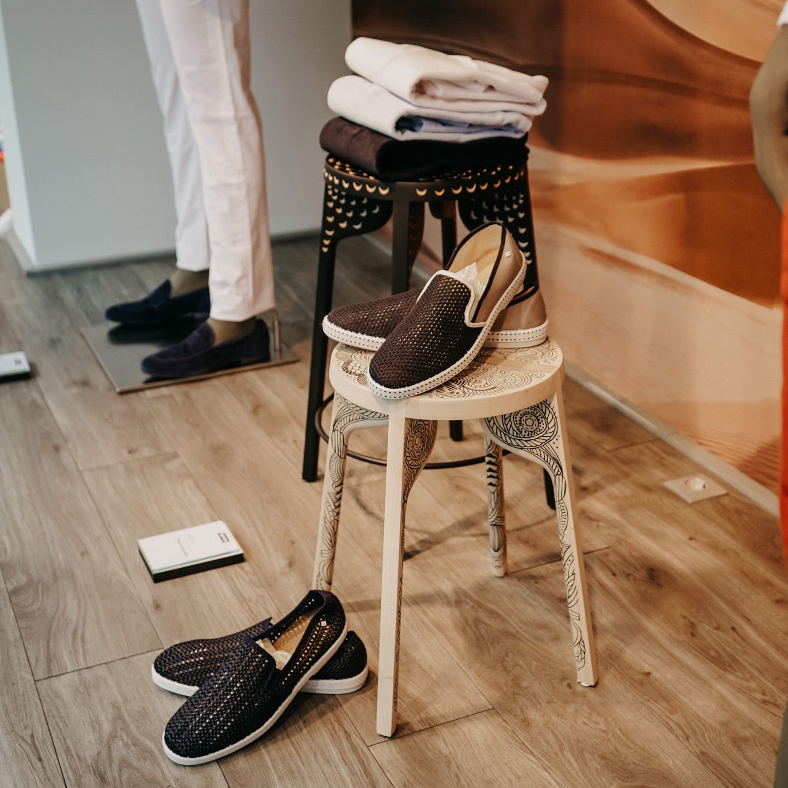 Zanat’s memorably individualistic Tattoo seating designed by Wingårdhs adds a stackable barstool version with a choice of hand-incised patterns. Offered in bar and counter heights, the finely crafted joinery of the stool's legs intersects the seat surface with an inset cross-like detail. Carved patterns include allover Peasant and Peacock motifs or the linear Perla, all executed in solid wood from sustainably sourced varieties in a range of finishes, with an integrated black steel ring footrest.
