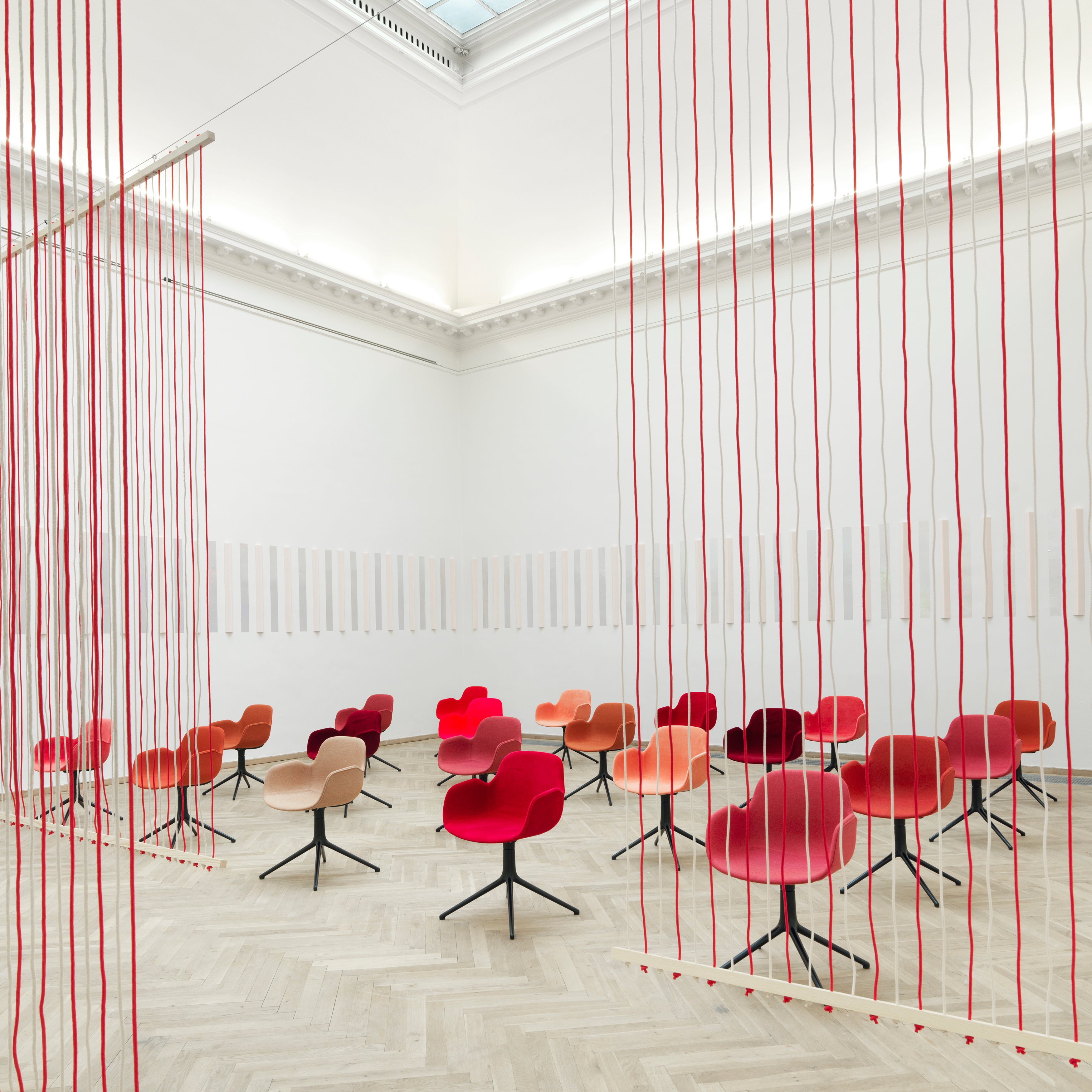 Adding to its complete custom upholstery, this version of designer Simon Legald’s redoubtable armchair is equipped with a swivel base—with the option of rolling casters—bringing easy functionality to the conference or dining table, Form’s fully clad version offers luxurious woolen textiles and exclusive leathers to soften the expression and add tactile warmth to its comfortable contours.