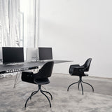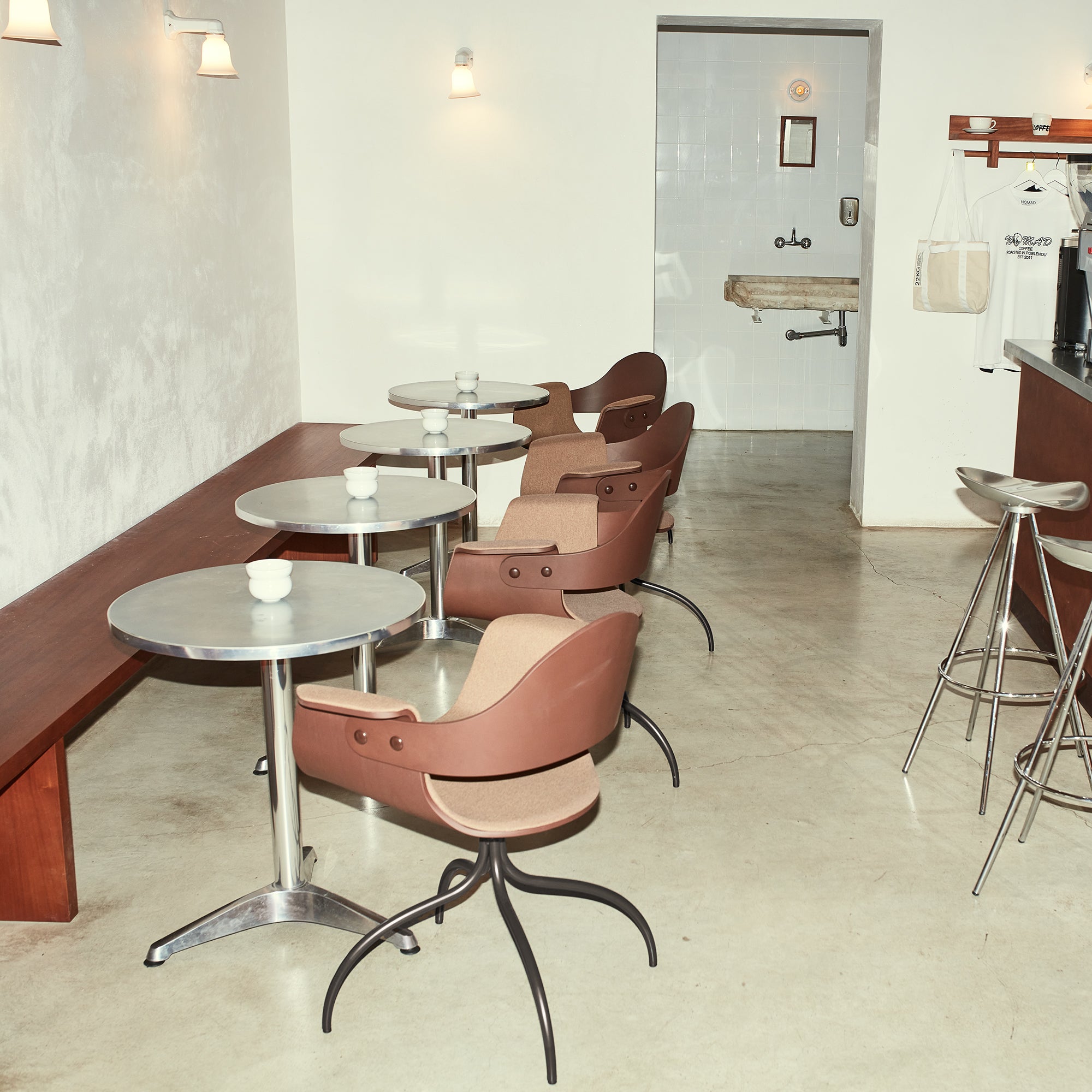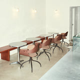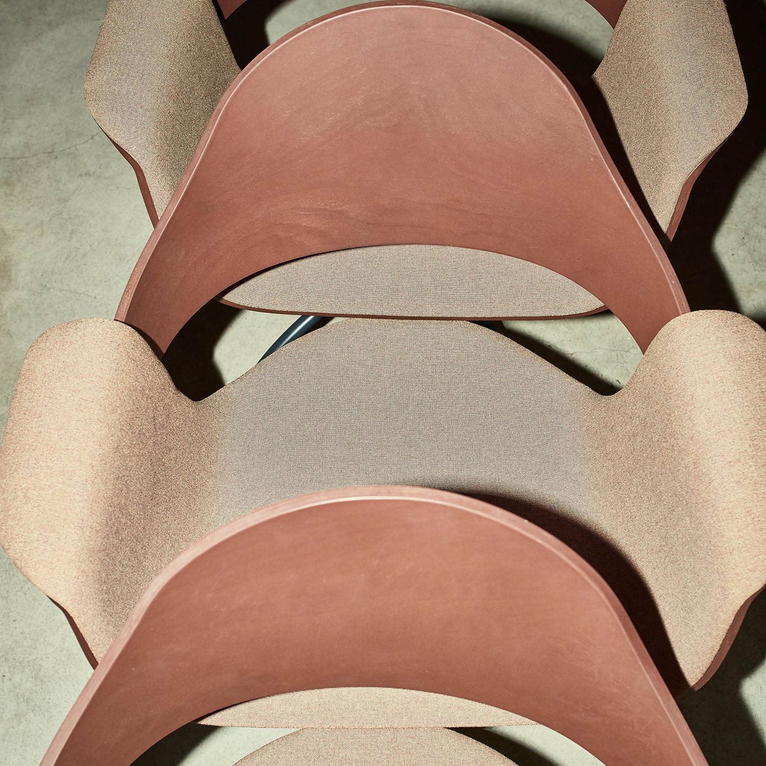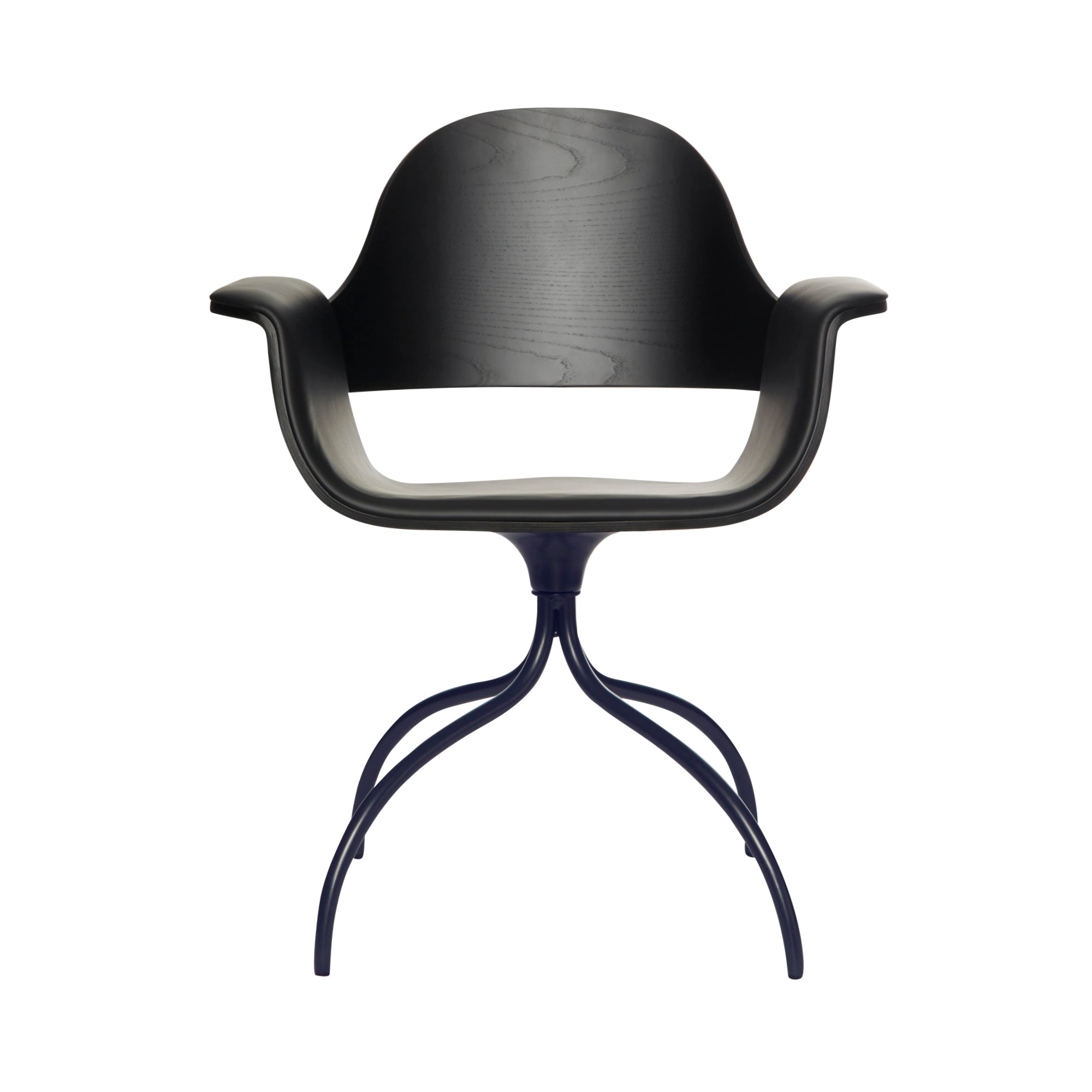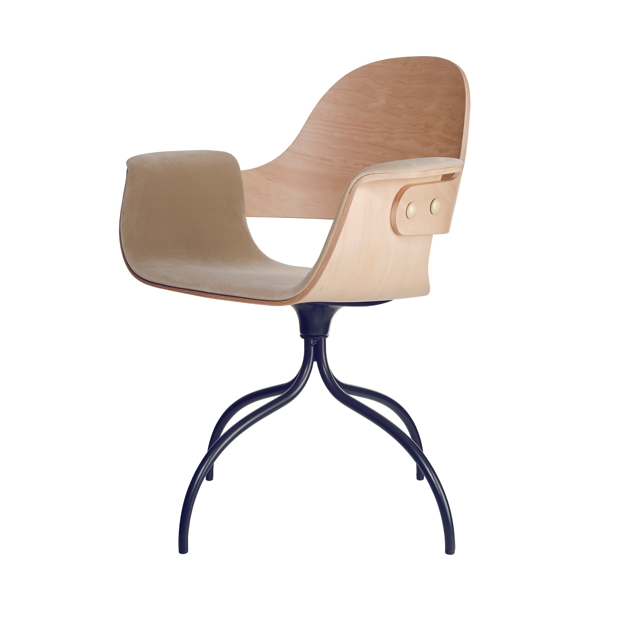 A custom-clad seat and convenient swivel function denote this model from Spanish designer Jaime Hayon’s Showtime Nude series. The molded-veneer seating’s natural woodgrain and higher, more ergonomic backrest pair with the powder-coated, steel swivel base and a choice of fabric or Leather upholstery.