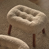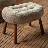 The Dagmar Clam Stool, originally designed in 1944 by Danish upholsterer Arnold Madsen, is a reissued classic in collaboration with Madsen's estate. Crafted with a solid beech wood frame and upholstered in luxurious materials like genuine sheepskin or leather. Available in finishes oiled oak, fumed oak, and walnut, it offers extra comfort with foam padding and linen webbing.