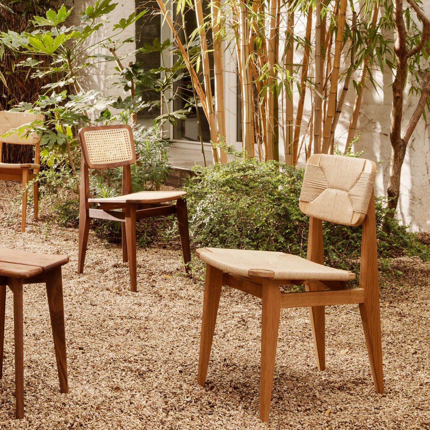 A hand-woven seat and backrest complement the midcentury style of this version of Marcel Gascoin’s iconic 1947 C-Chair. As relevant today as when originally designed, it became the familiar presence in post-war French households. Now faithfully reissued by Gubi, the versatile dining chair endures as a model of unerring craftsmanship and refined utilitarian aesthetics.