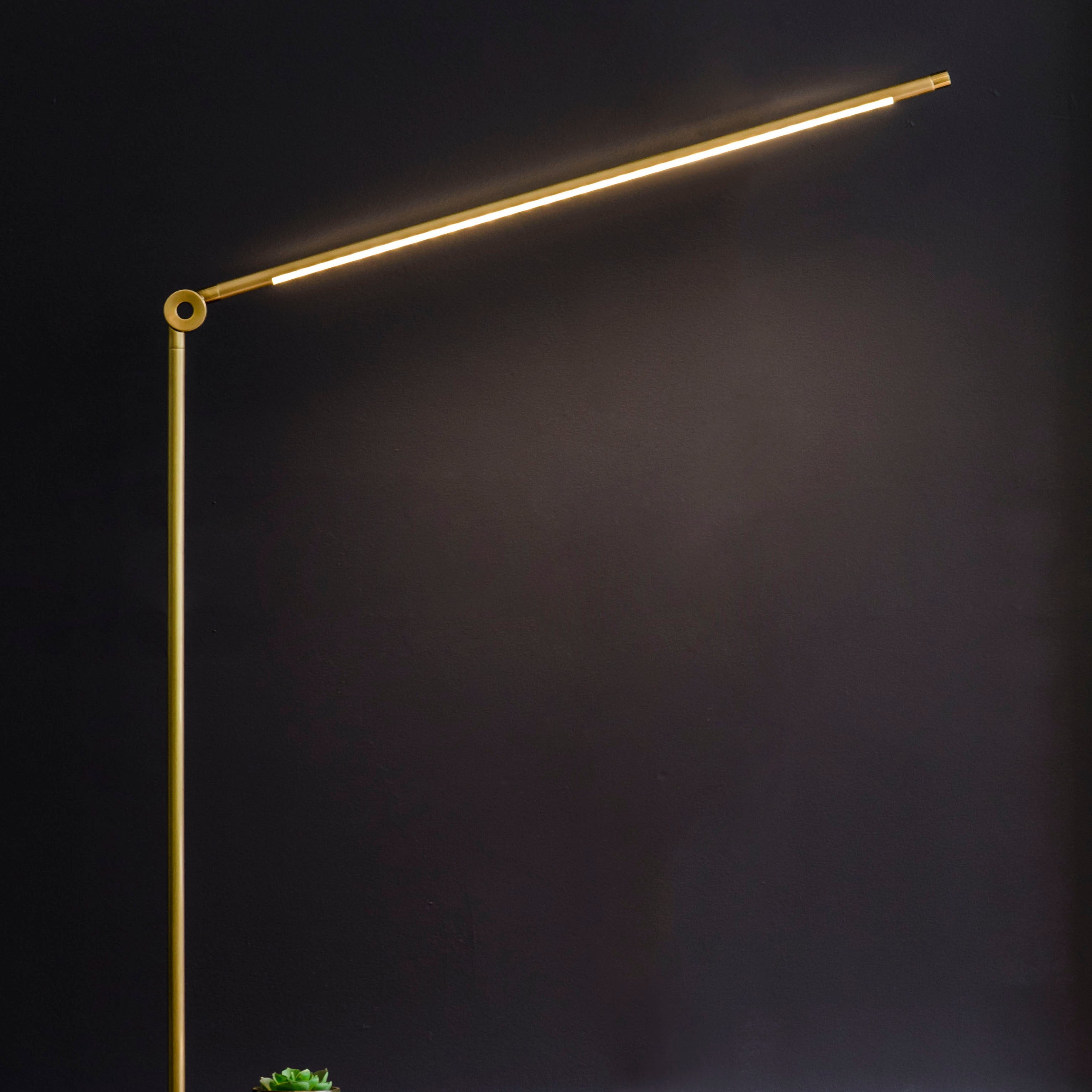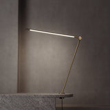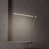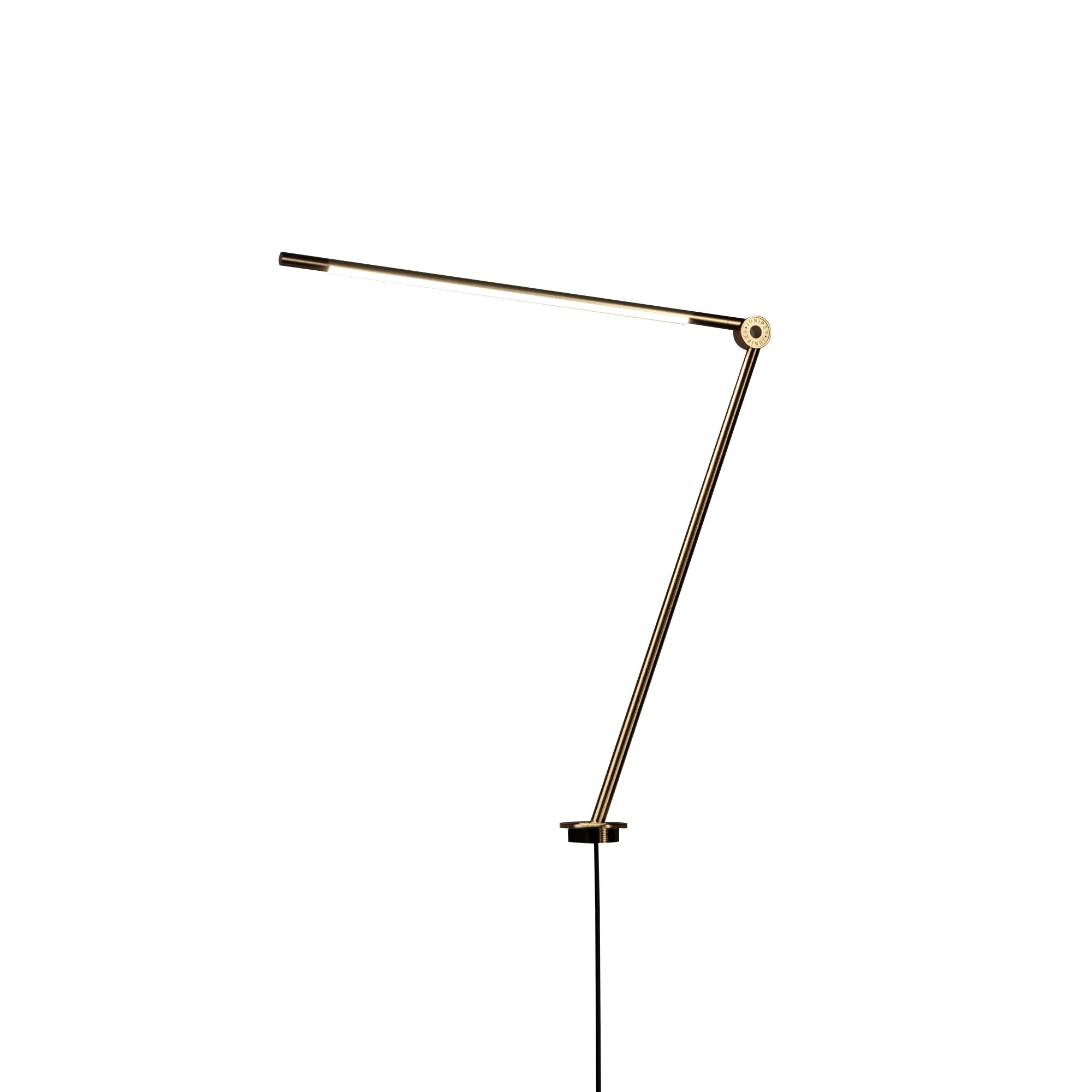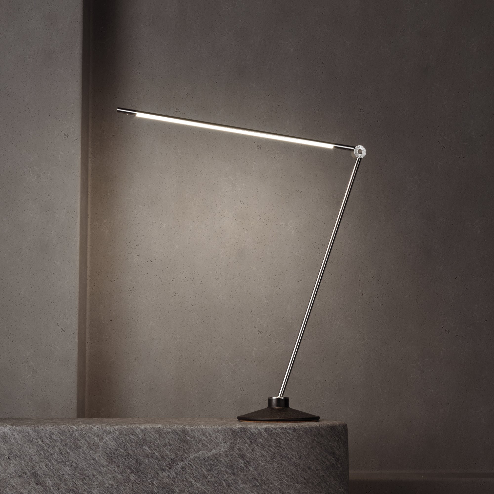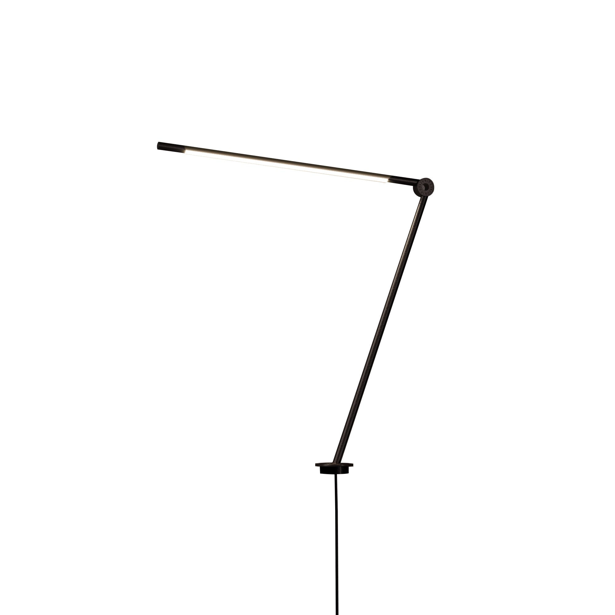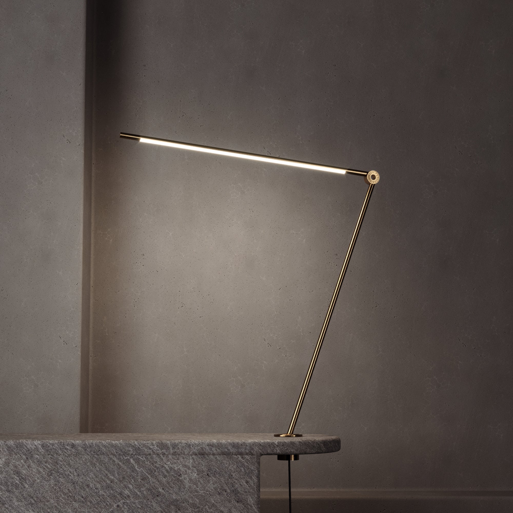 In this case, Thin really is in! By narrowing down form to the nth degree, LED technology triumphs in Thin, an innovative task light. This lithe light stylishly hews to their dicta of efficiency in both space and energy consumption. A folding ultra-thin wand of light—only 1/2 inch!—is mounted on a ball joint that allows for multi-directional movement. Angle and extend arm to 3 feet to stretch over any work surface. This sleek wonder produces an awesome 500 lumens of warm white light, powered by 33 high-powered dimmable LEDs. Turn knob at the end of the light tube to elegantly dim.