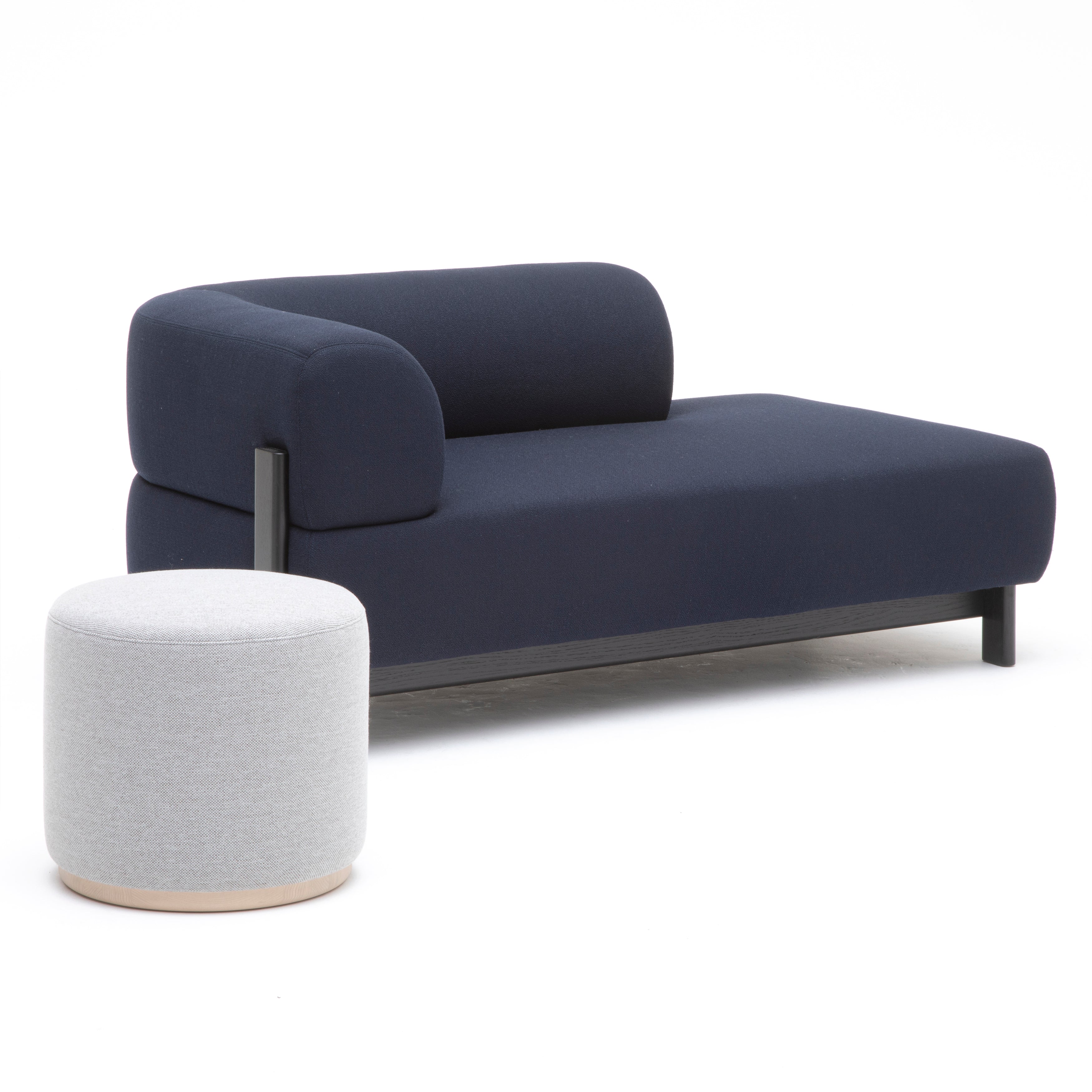 Christian Haasâ upholstered Elephant ottoman comes in a lower model to pair with lounge-level seating or a sofa table. The rounded form reads as a modern classic, with a firm but comfortable surface from its durable pocket-spring core cushioned with high-quality foam. Both the frame and visible base are made of sustainably grown solid Japanese chestnut in a choice of natural or black.