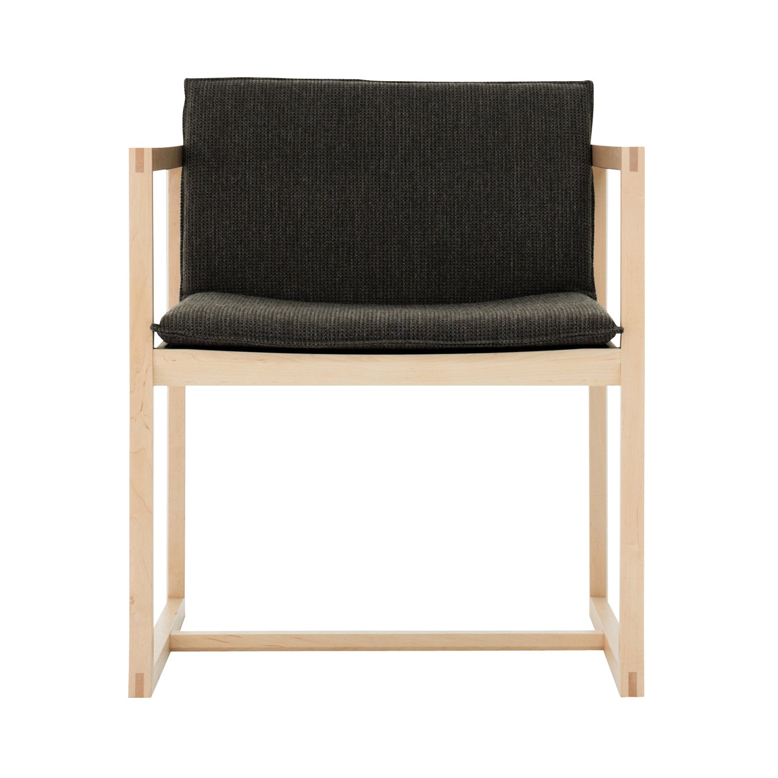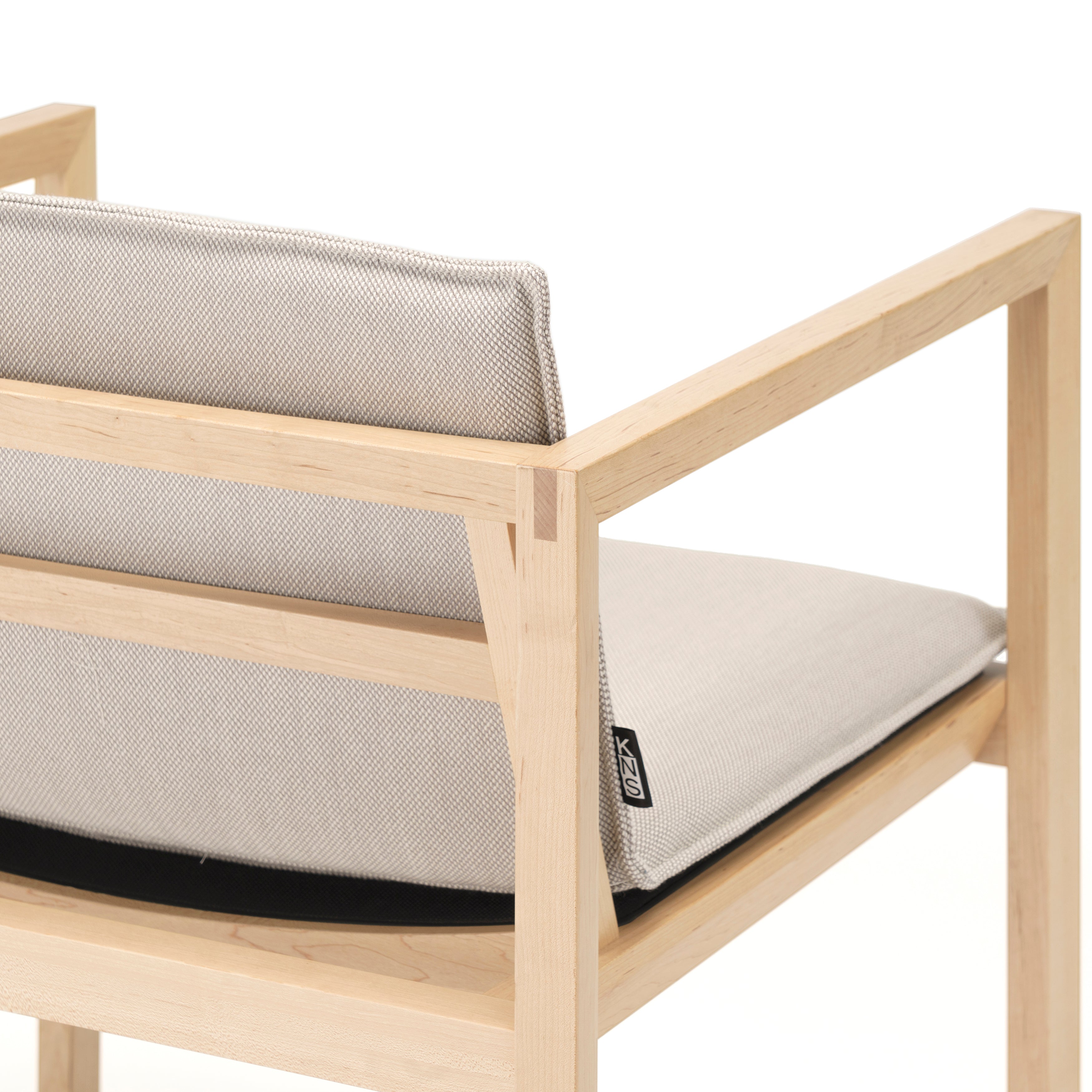Takahiko Fujimori's graphic chair features an angled, padded backrest set at a slightly lower position than a standard chair, allowing for relaxed, yet naturally spine-straightening repose. Another grace note is is the geometric frame, devised from a succession of squared-off shapes and assembled using the traditional Japanese triple-tenon woodwork technique known as tomegata sanmai tsugi. Once again, Karimoku New Standard's lofty history of woodworking technique is as impressive as its ongoing commitment to ecologically sustainable timber sourcing.