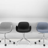 The Form armchair, with its contoured shell, is already a comfortable fit. Paired with a swivel base, and it's a welcome addition at a conference or dining table. Such is the aim for Danish designer Simon Legald, who not only wanted a contoured chair that welcomed the user for long stints, he also wanted a Form that could function in nearly every scenario. With 40,000 combination, the Form seating series, made by Normann Copenhagen, does just that.