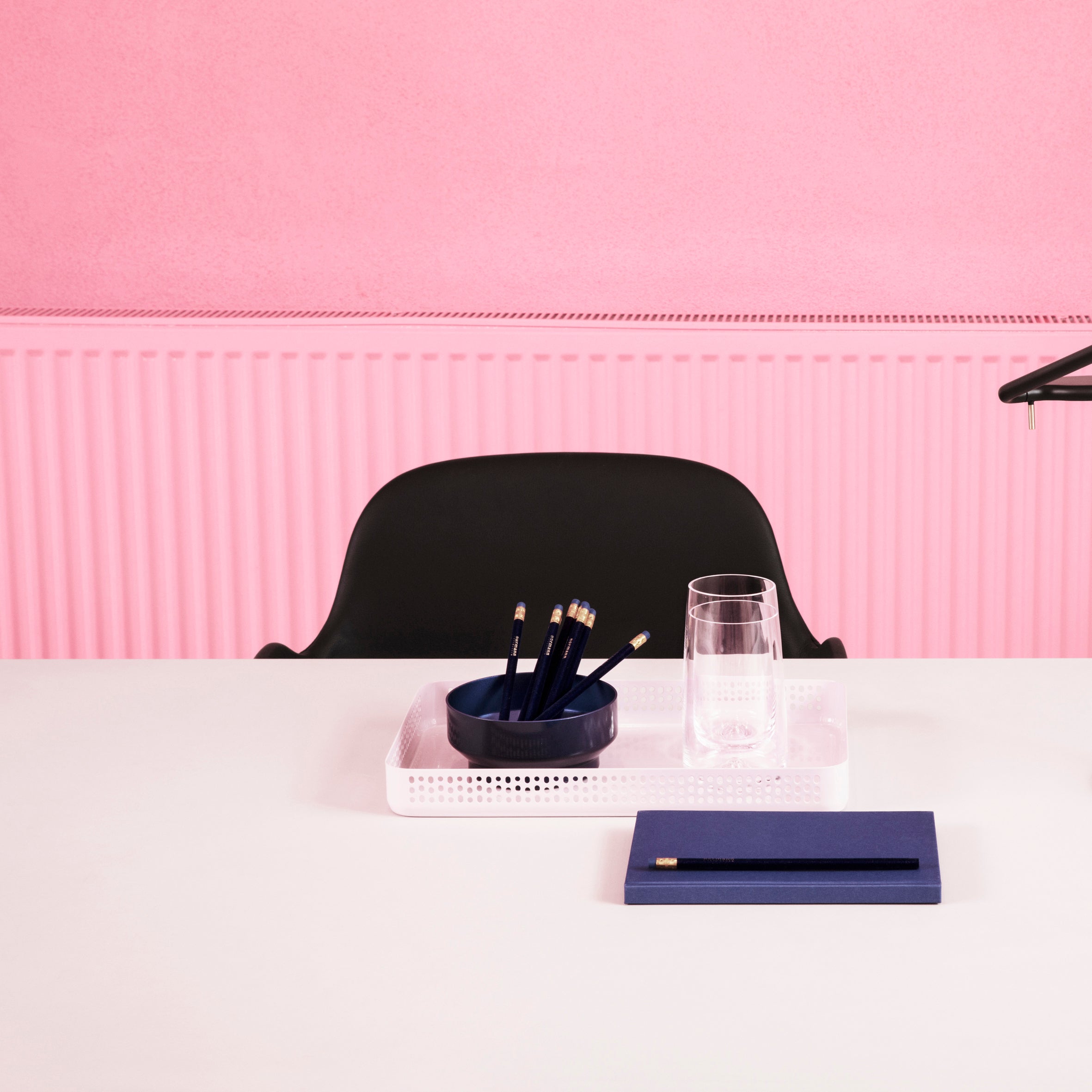 Normann Copenhagen's signature Form seating series raises if office compatibility with a gaslift function. The ergonomically contoured shape and arms make it ideal for any work setting, including the conference area. Danish designer Simon Legald spent 2 years pushing through dozens of prototypes until he reached one that met his goals in comfort, function and spare form.