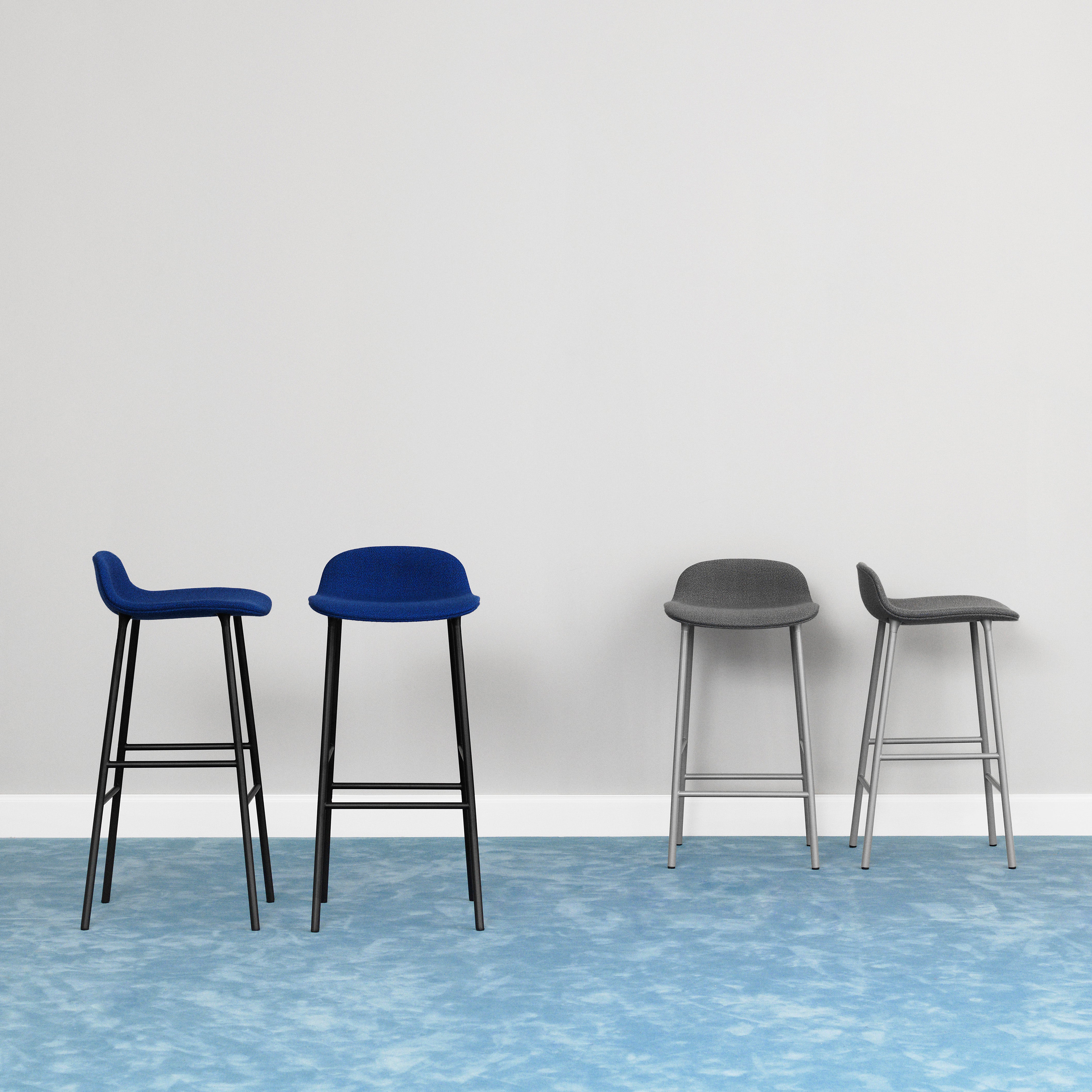 Form Bar Stool: Steel Base + Upholstered + Blue