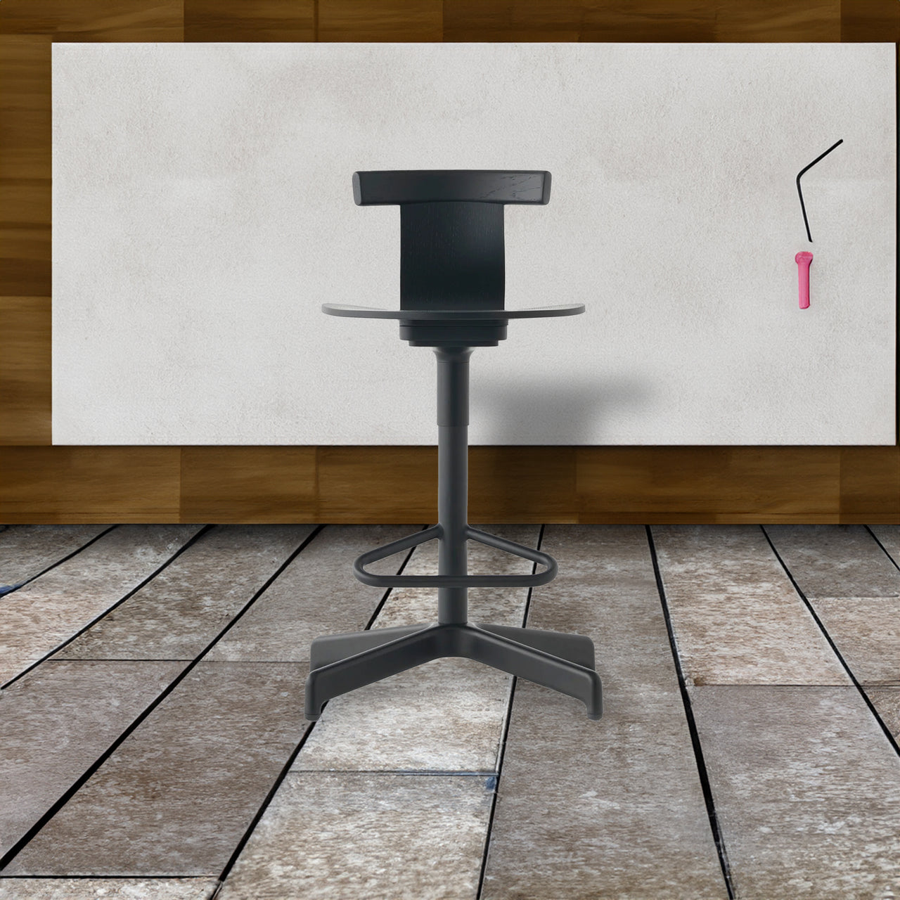 The popular Jiro is now available in a bar or counter stool variation. The Jiro’s standout feature is the flexible plywood backrest, which provides dynamic support across multiple seating positions. It is available with natural or black oak veneer finishes, paired with a footrest and a 4-star black steel base. The steel base, combined with the finely balanced oak veneer and plywood construction of the back rail, provides responsive ergonomics in a visually striking spare design. “The brief from Resident was to design 'something simple, not overly technical, but subtly ergonomic'," said Tree. "From the beginning we focused on paring back the design, so all that existed were the essential elements."