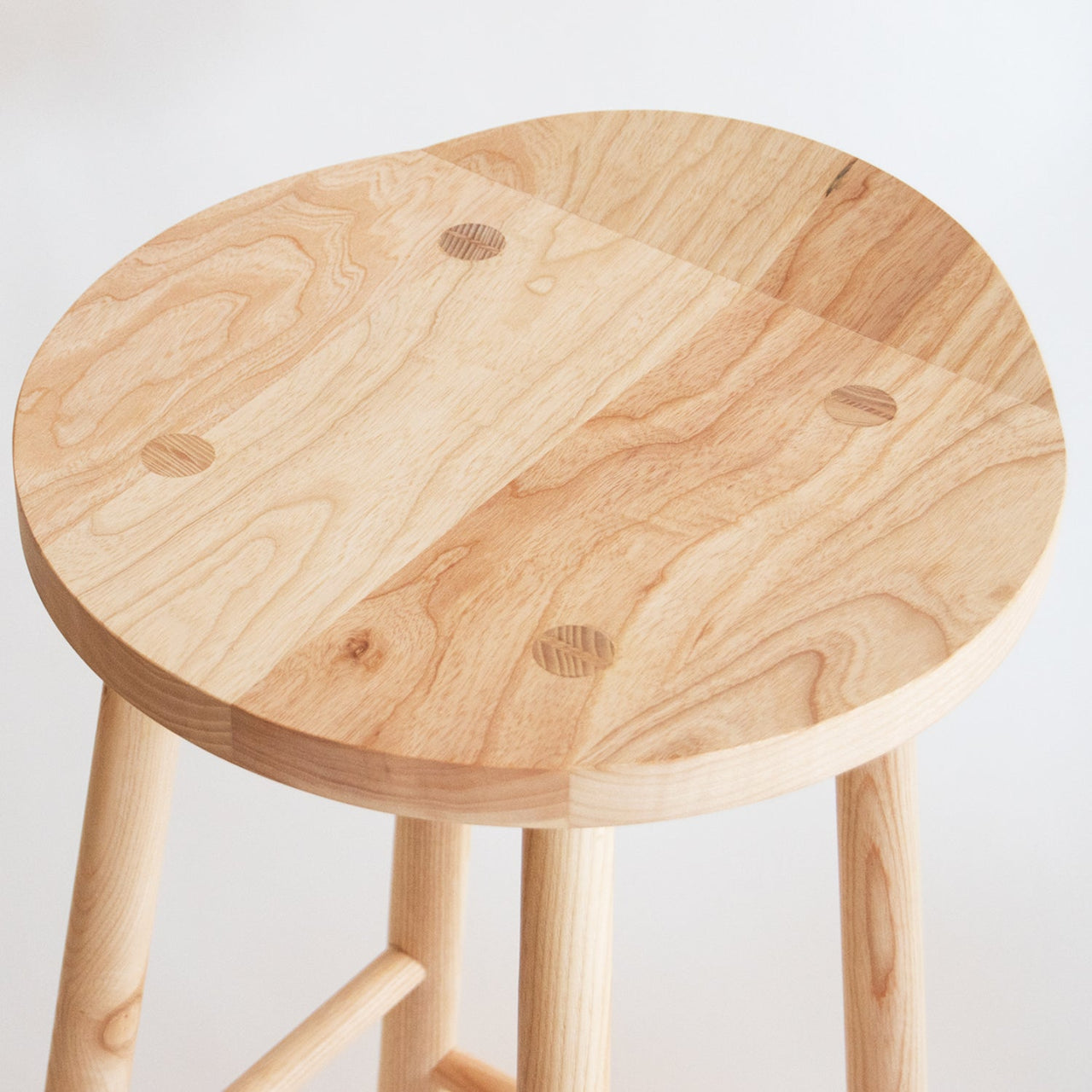 Easily transitioning to a bar-friendly height, British-based designer Alex Hellum's beautifully crafted wood stool retains its exceptional comfort and low-key charm. Ulrik features masterfully executed joinery details that allow the seat to be constructed from 2 separate parts for its distinctive look. Constructed in solid ash with turned-ash legs, it's available in either a natural oil or stained black finish and easily complements a range of interior settings. Made in the UK.