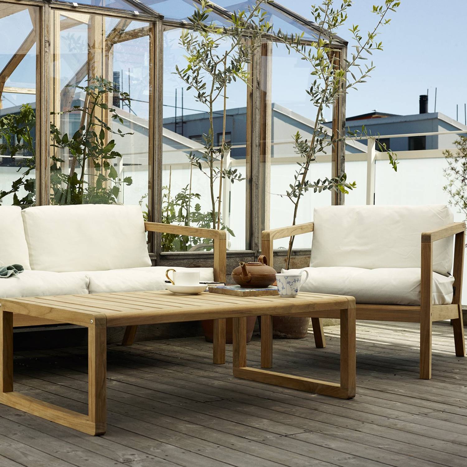 Nikolaj Duve and Kasper Meldgaard may take inspiration from Danish icons of the 1950s but Virkelyst Chair is thoroughly contemporary. Known collectively as Says Who, the Scandinavian designer duo brings an unwaveringly minimalist style to their outdoor seating. Crafted in solid teak, the spare wooden frame strikes a contrast with the thick, soft cushions covered in weather- and water-resistant Barriere textile.