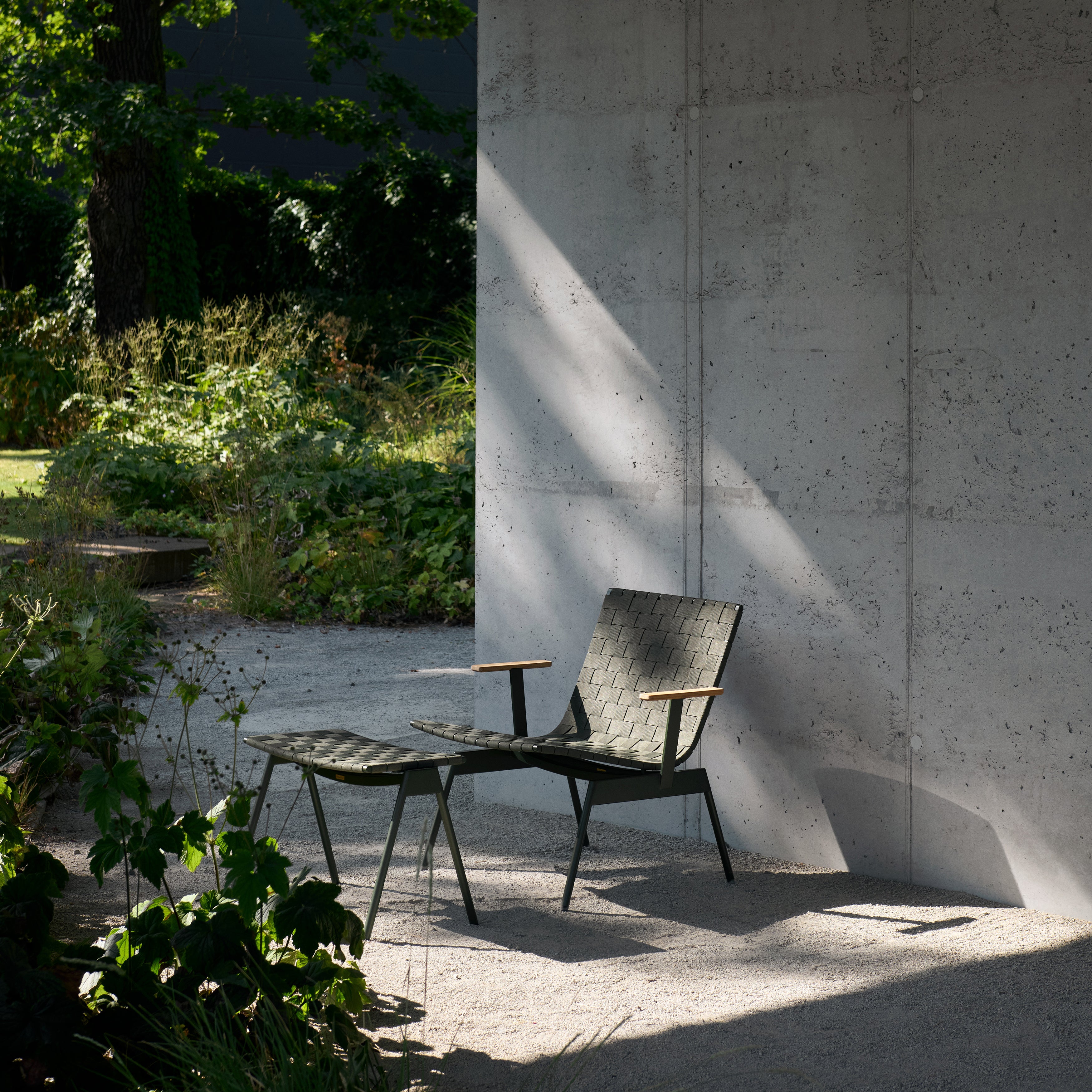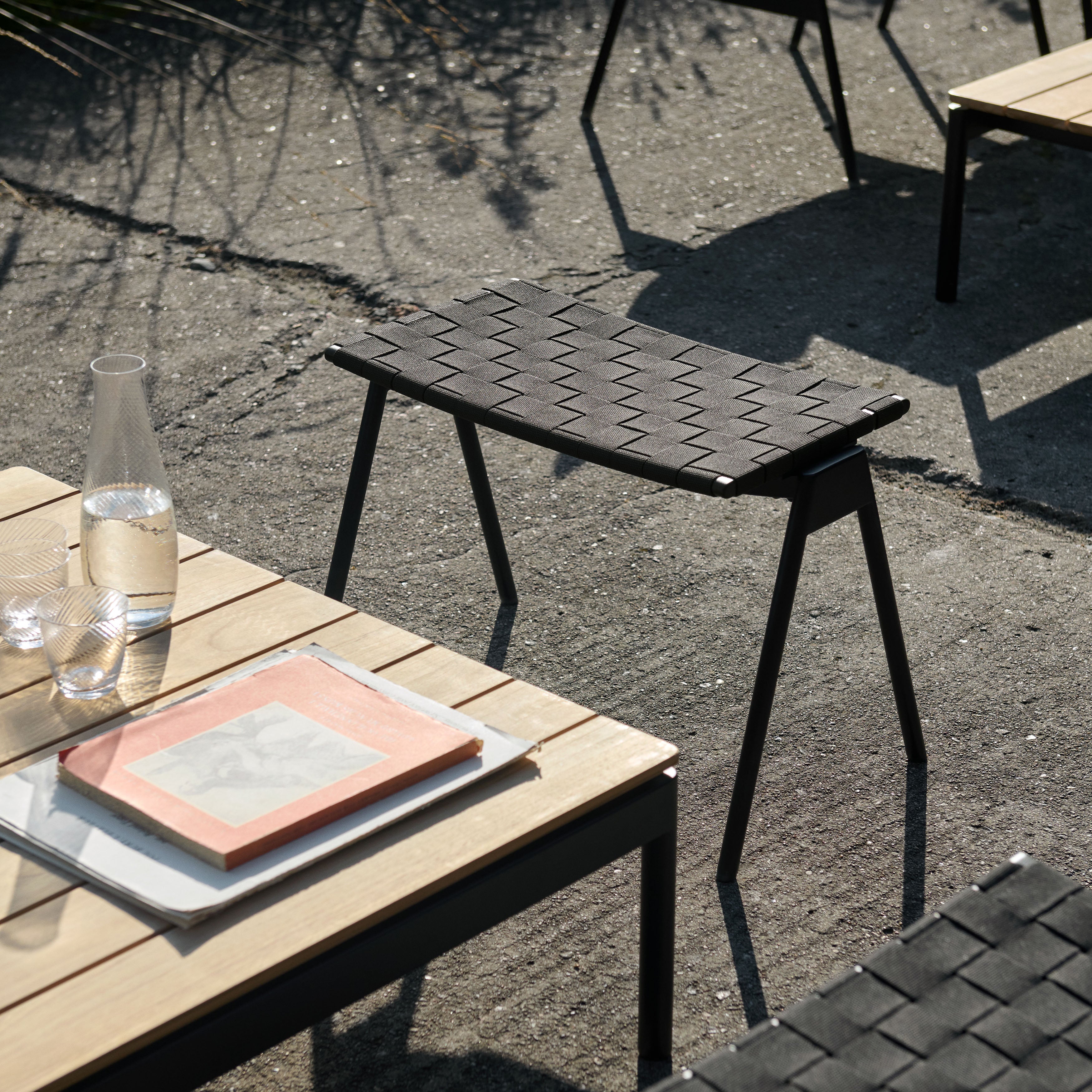 A minimalist steel frame supports this outdoor footstool, offering a sturdy base for relaxation. The seat features a flexible polyester weave that delivers comfort and withstands outdoor conditions. Available in bronze green, and warm black finishes. Part of the Ville collection, the footstool pairs effortlessly with other pieces to enhance outdoor living spaces.