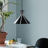 The Bloom Pendant Lamp features a super-elliptical form inspired by the gentle flow of paper lanterns. Its design combines a finely perforated mesh core with frosted blown glass, projecting a soft-focus texture onto the inside of the shade while casting unobstructed light downward. This pendant is available in 3 colors, each finished with a silky matte lacquer for durability.