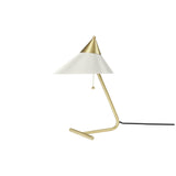This lamp showcases a conical shade with vertical grooves along its edge, delivering both direct and ambient lighting. The design incorporates a brass stem, a string switch, and a cone-shaped top, resulting in a playful yet refined look. Available in a silky matte finish, it adds a soft and polished touch, making it suitable for both illuminating and enhancing the decor of living spaces.