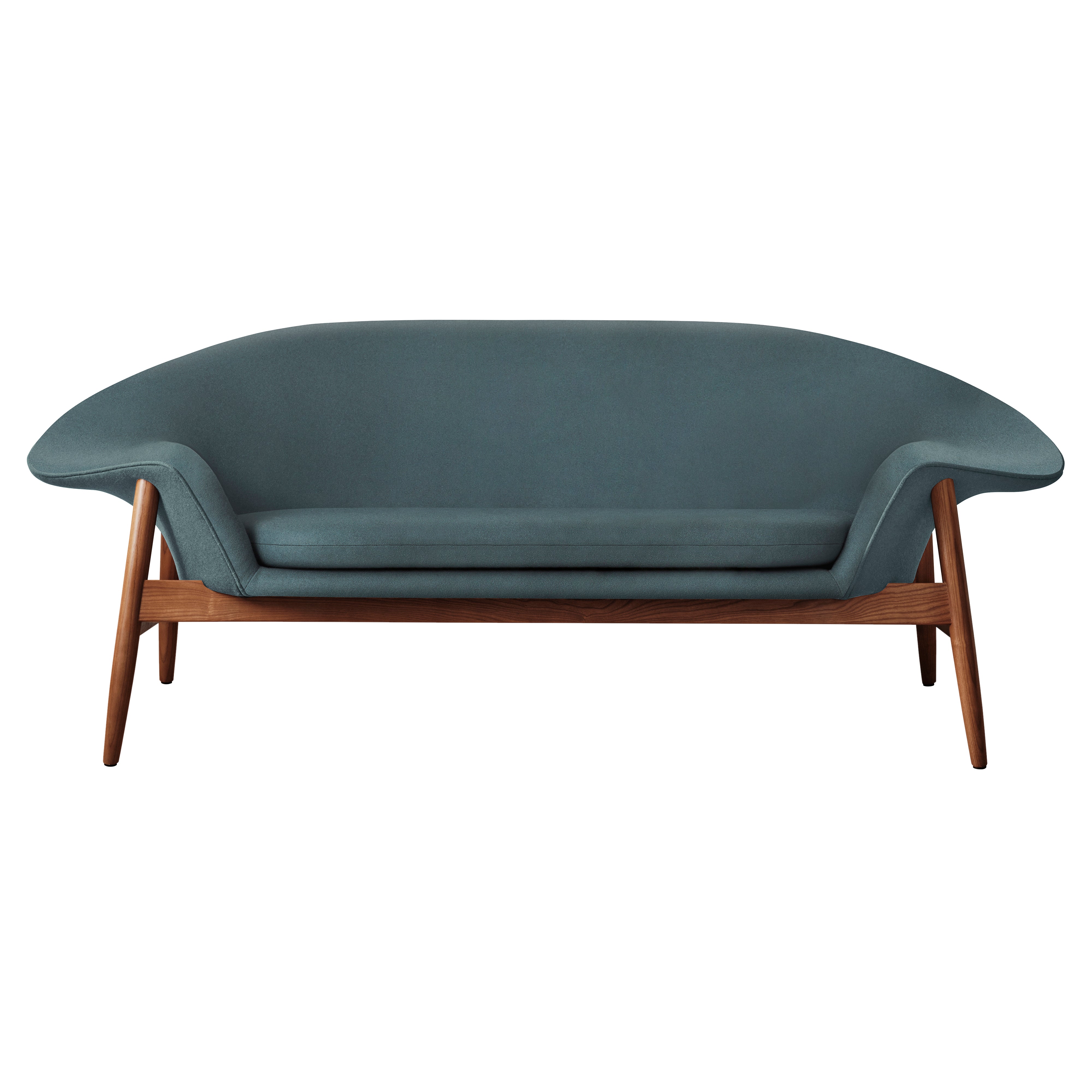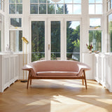 The Fried Egg Sofa has its roots in Danish modernism of the ‘50s, metamorphosed in a current collaboration between architect Hans Olsen's descendants and Warm Nordic. Adapted from the design icon’s original asymmetrical armchair with notably flat armrests, the sofa extends those playful lines, set on an oiled solid-teak frame.