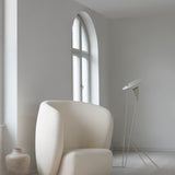 The Silhouette Floor Lamp features an asymmetrical design, a well-balanced stand, and indirect lighting. The small upward-facing light source reflects off the wide, slanted metal shade, creating a unique play of light and lines. Solid brass details add further refinement to the design. Available in Pure Cashmere, Black Noir, and Warm White, in Warm Nordic's exclusive silk-matt finish, ensuring both beauty and durability.