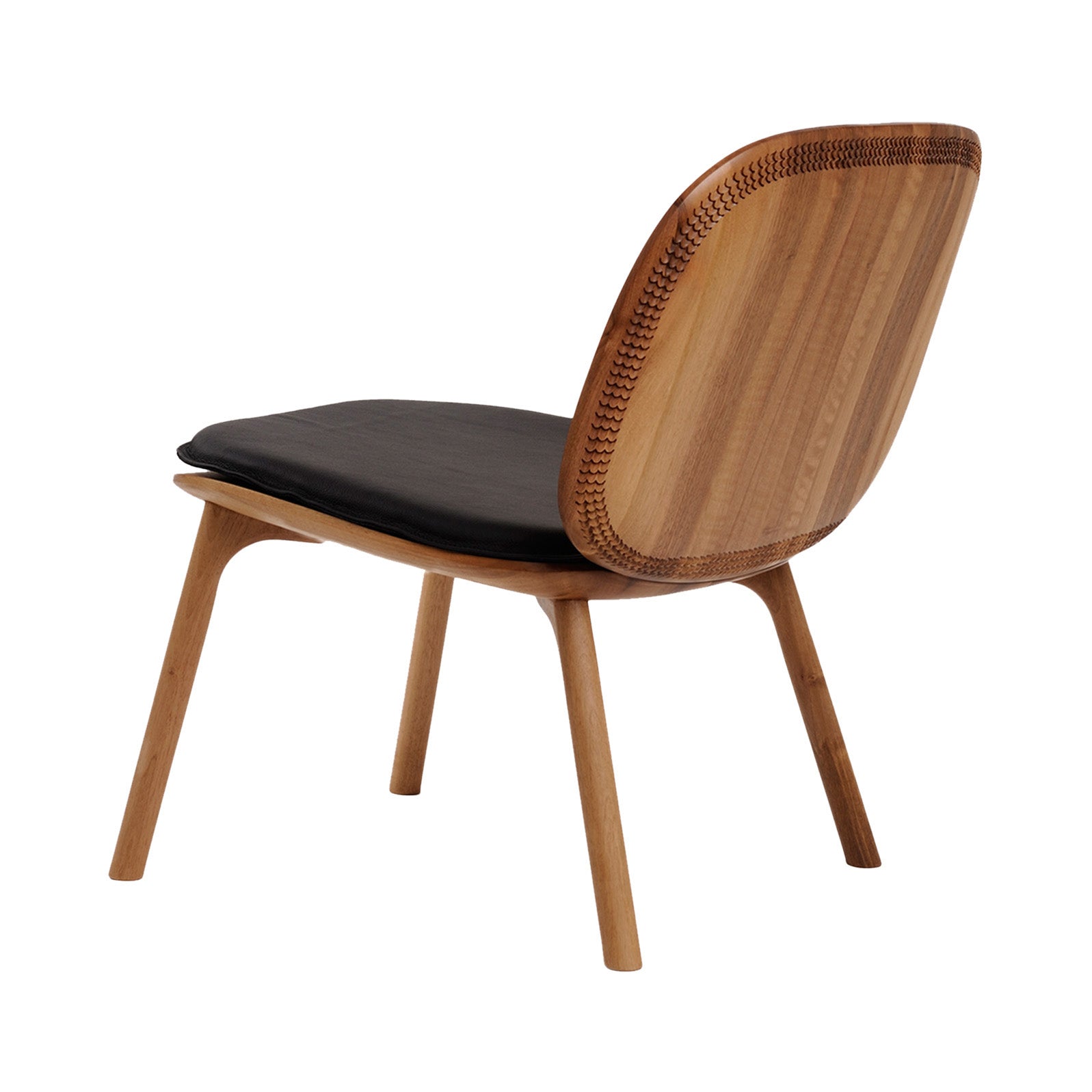 Employing Zanat’s century-old and UNESCO-cited World Heritage hand-carving technique, Unna proves an elegant update. Artisan carving in a modernized pattern graces the back of the lounge chair's rounded contours—softening the impression of the seating in solid wood, a warm but hard material. Crafted in a choice of sustainably sourced varieties, Monica Förster's design adds the option of a removable leather cushion on the seat or fixed cushioning on the backrest and the seat.