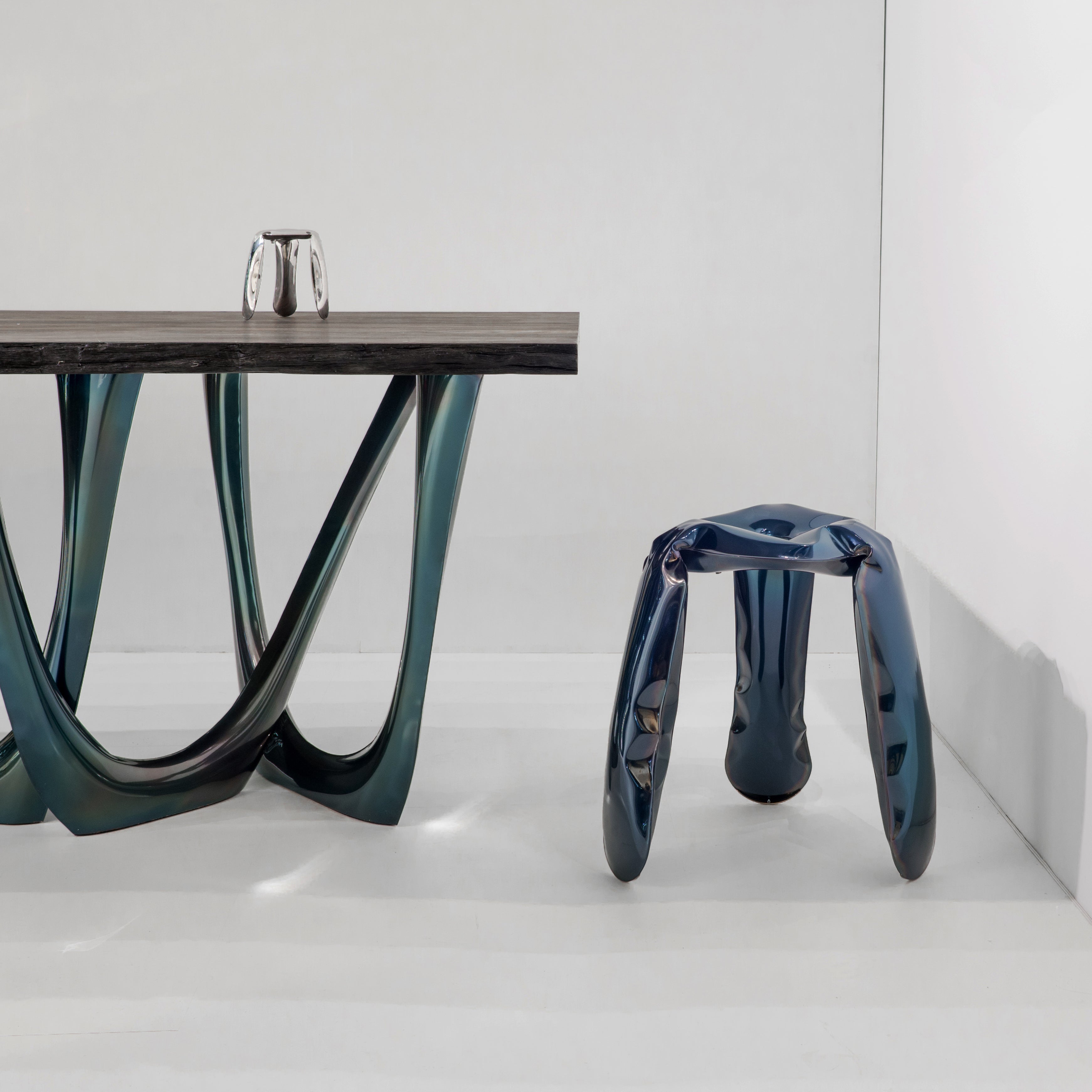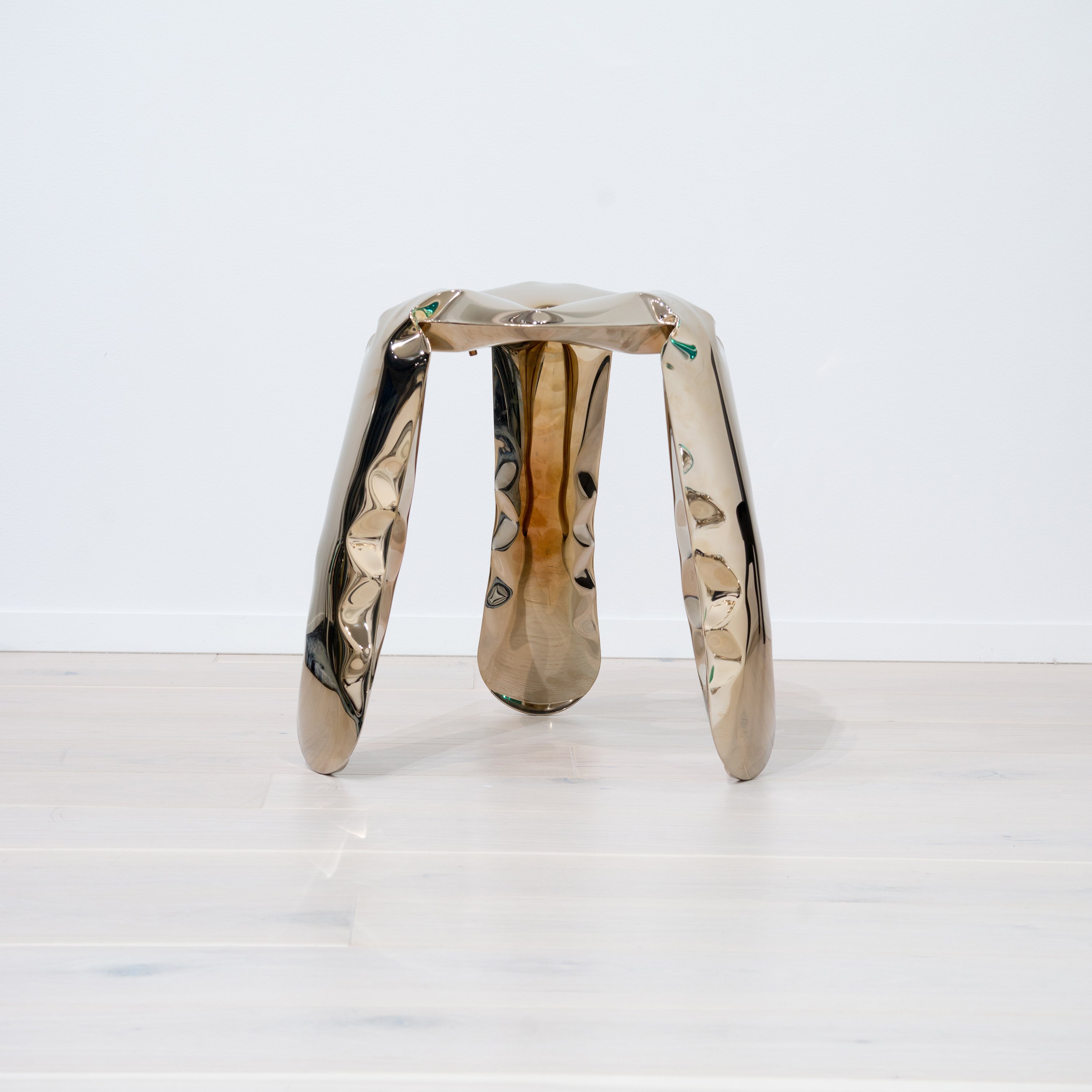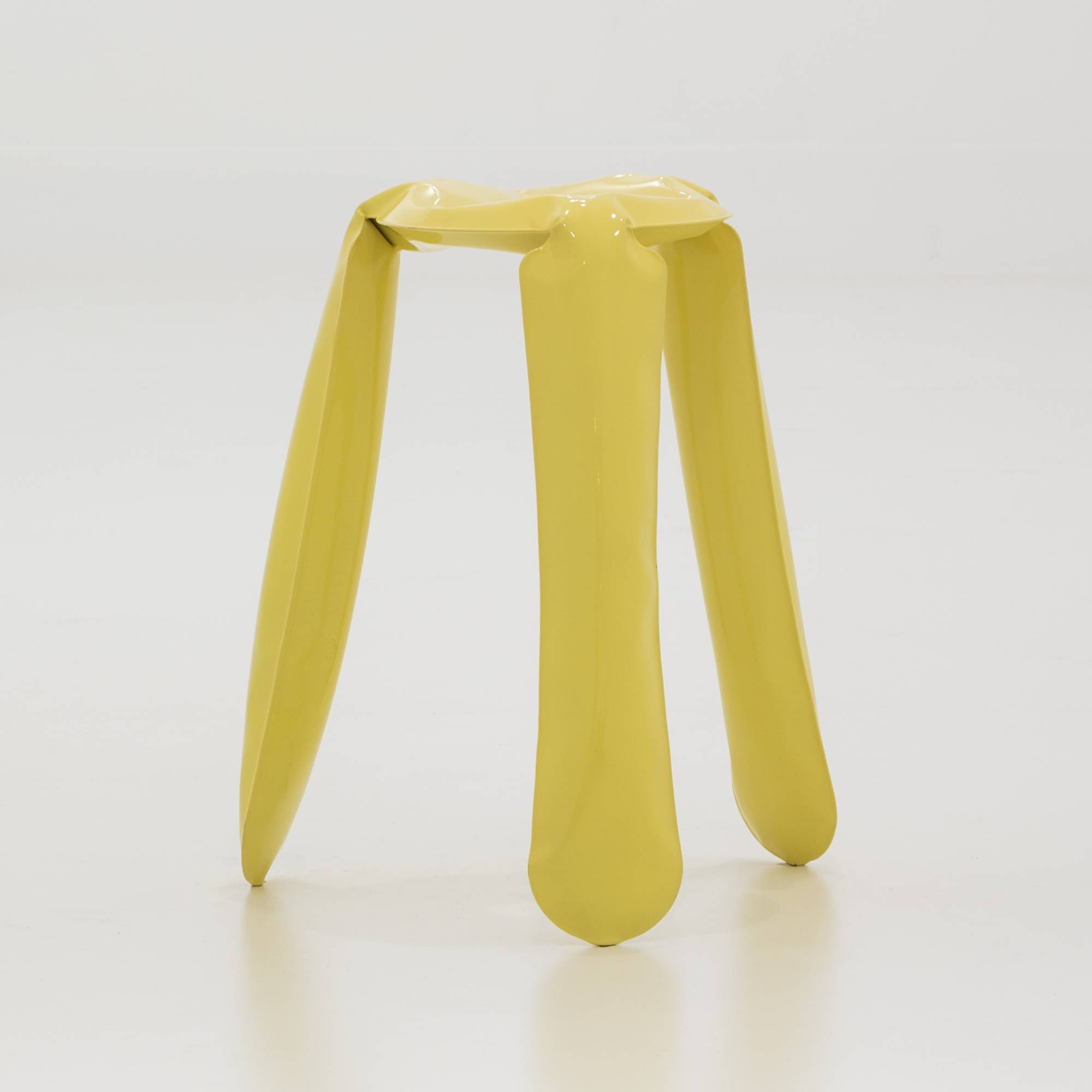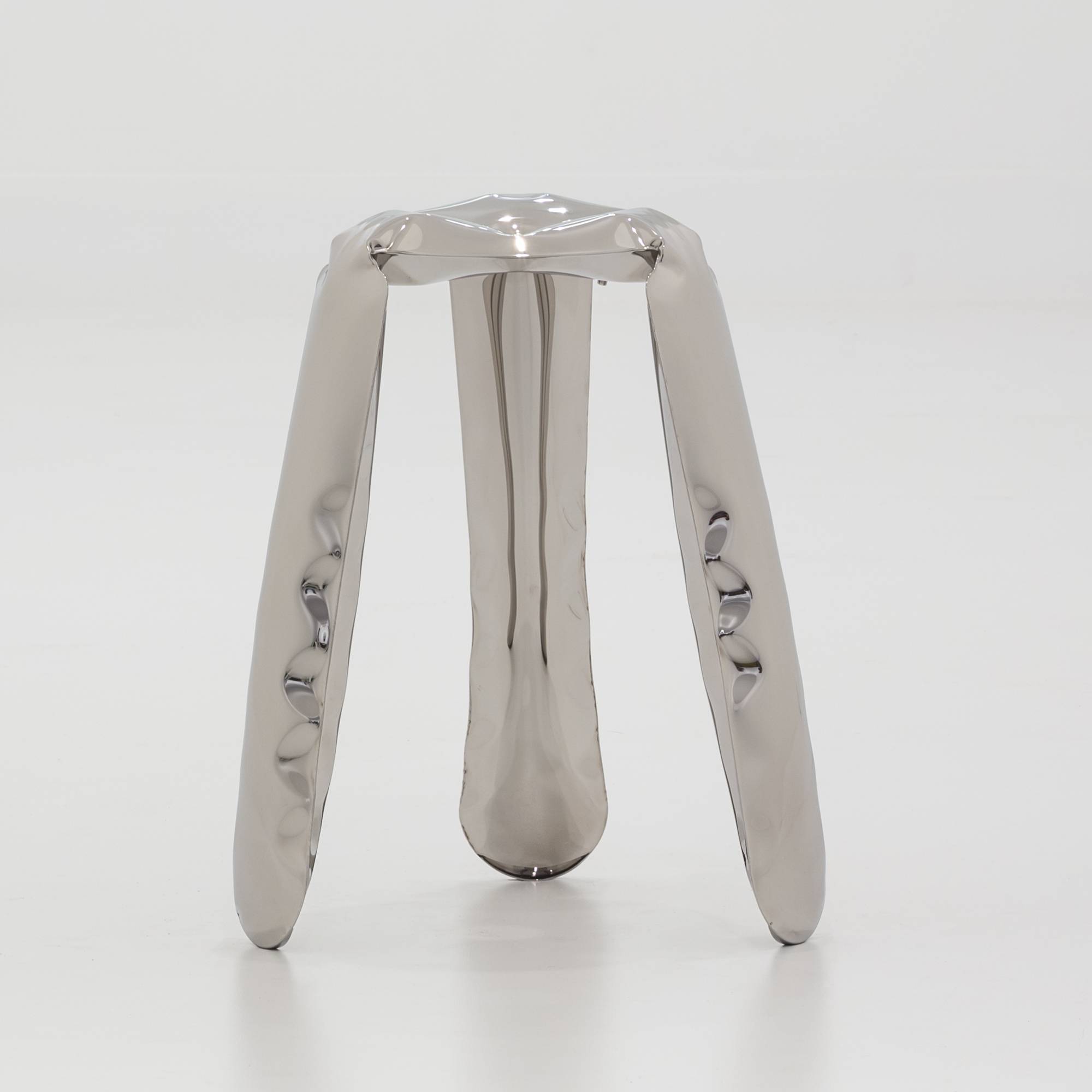 For sitting at the kitchen counter or just hanging out, this Plopp version is just the thing. A higher-seat variant on the head-turning original, the signature "swole" look is a result of the Zieta's astonishing FIDU process. Double sheets of very thin steel are inflated to 3D proportions under high air pressure. Lightweight, durable and, given the variables of the manufacturing technique, each one is fabulously one-of-a-kind.